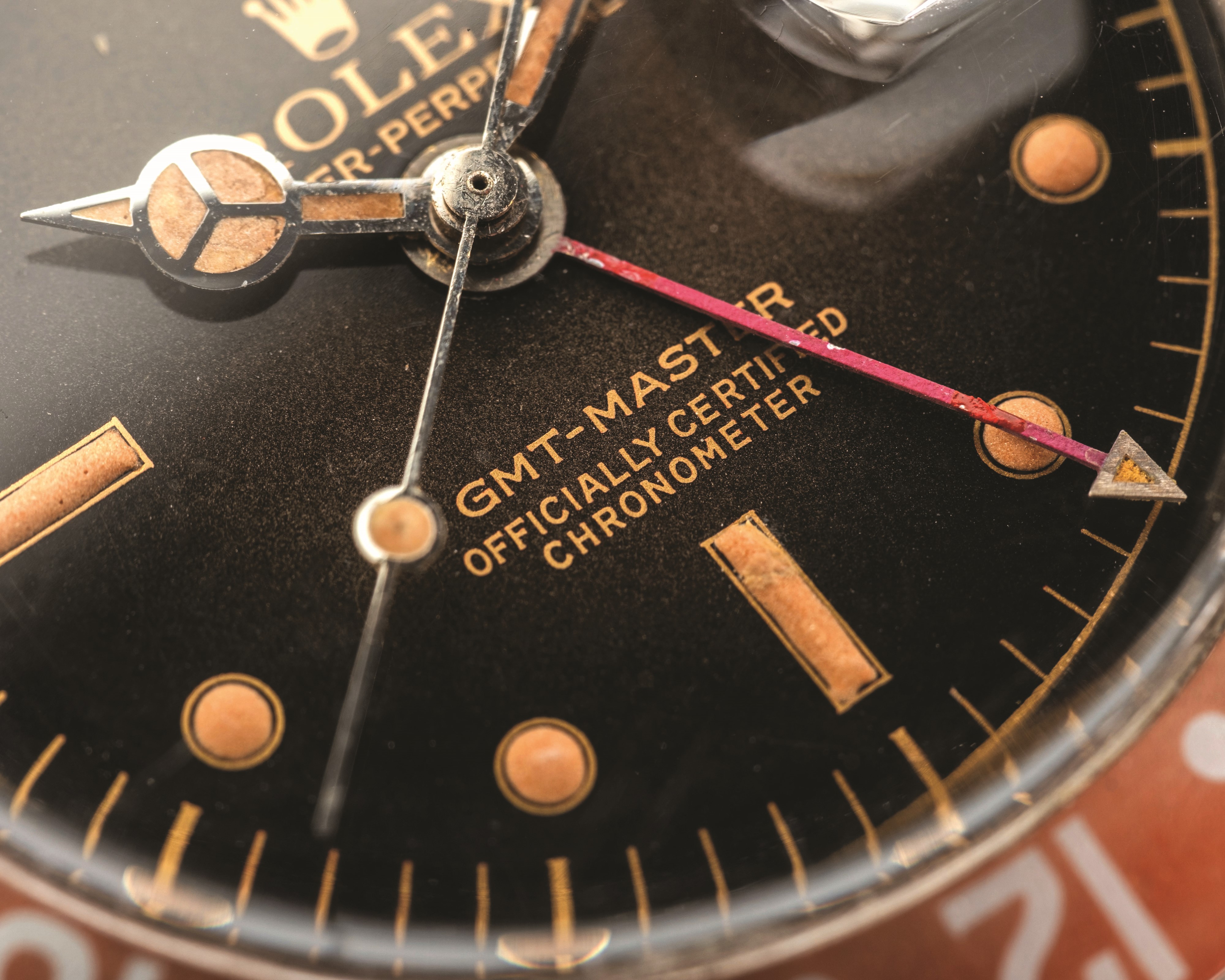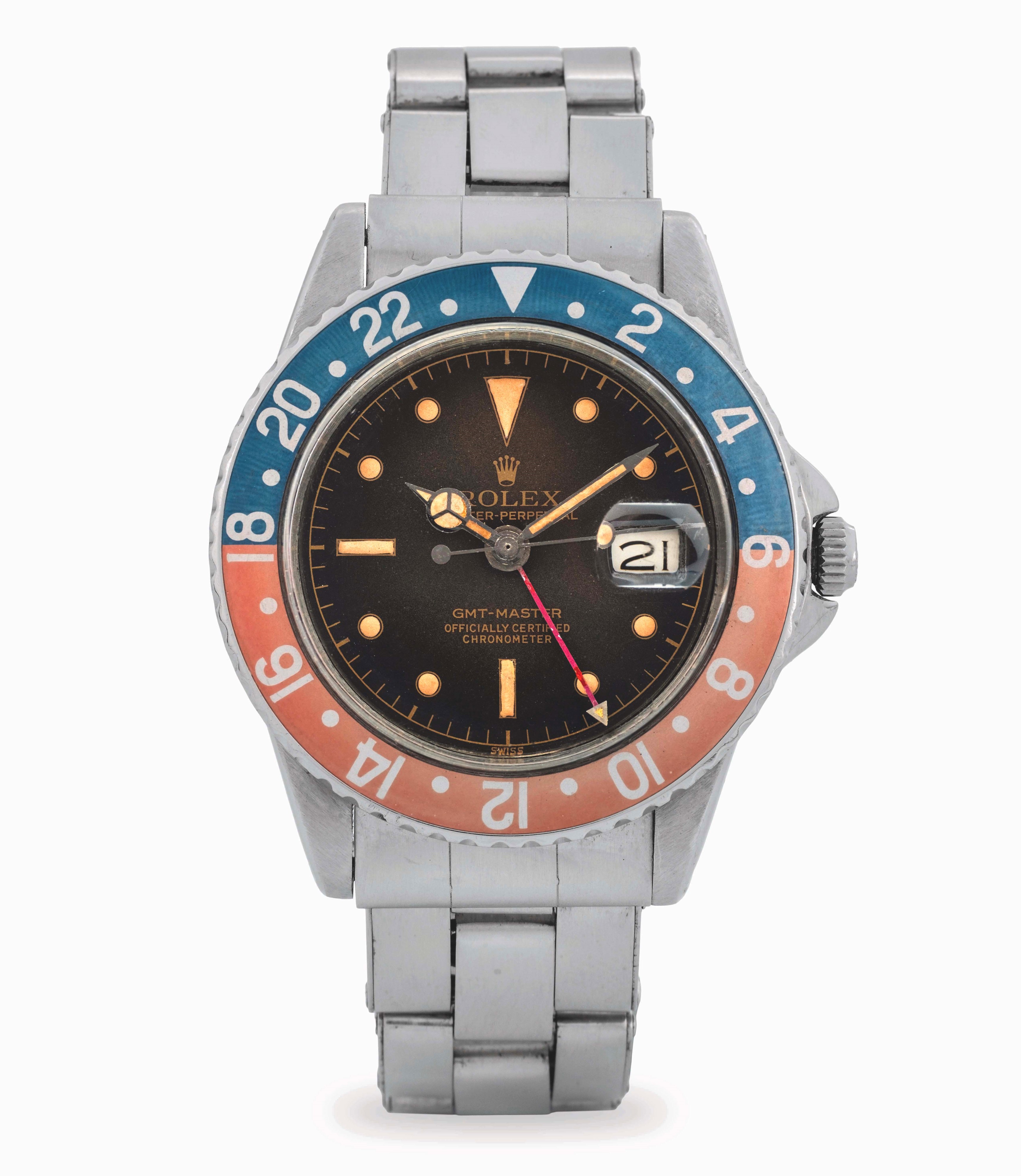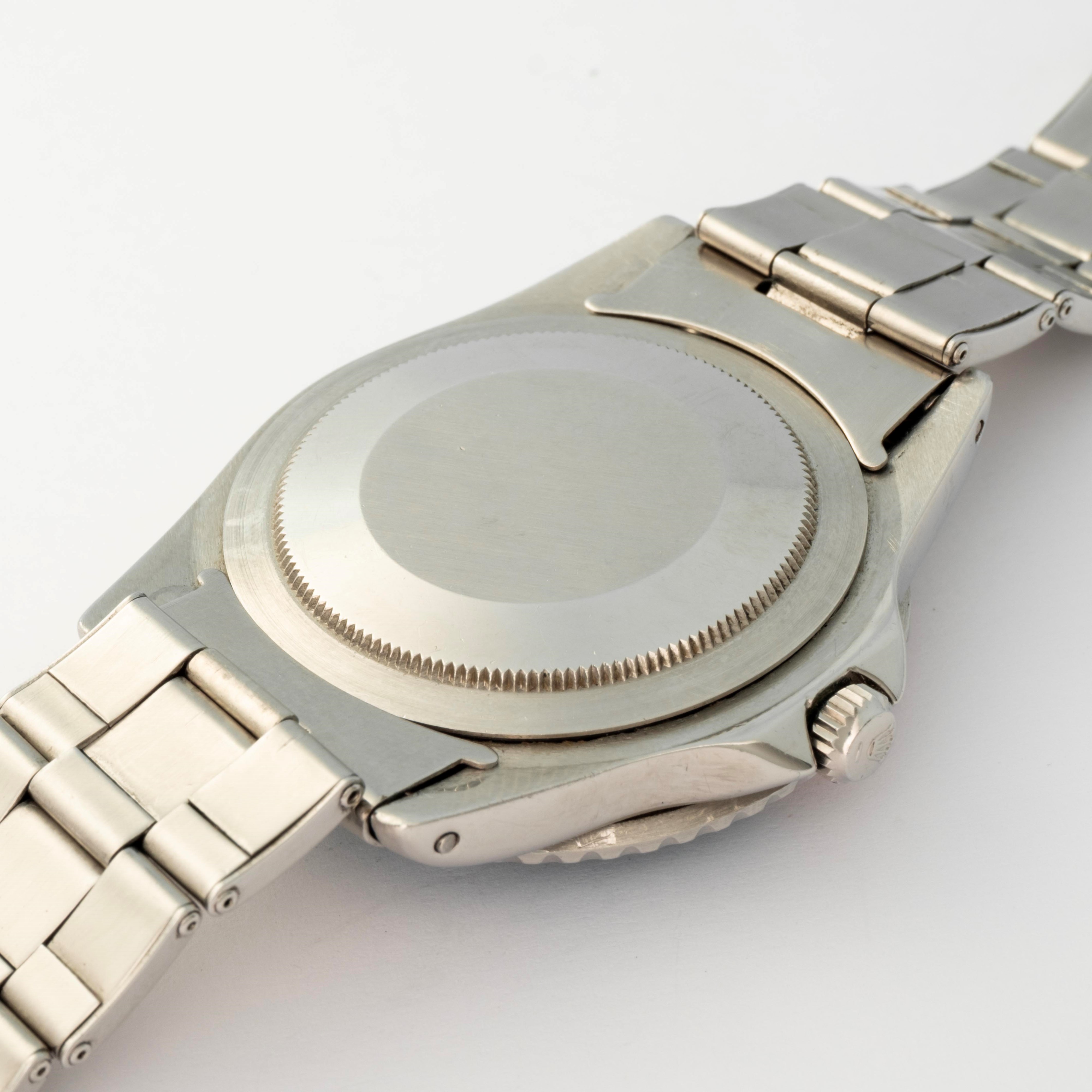 Questa caratteristica, unita alla rarità del bracciale elastico, rende il presente GMT-Master un esempio particolarmente desiderabile della prima generazione 1675, una referenza fondamentale nella storia Rolex.