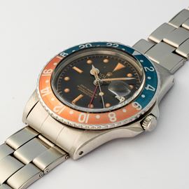 GMT Master in acciaio ref. 1675 “OCC” con lunetta Pepsi e bracciale Oyster elastico, circa 1959