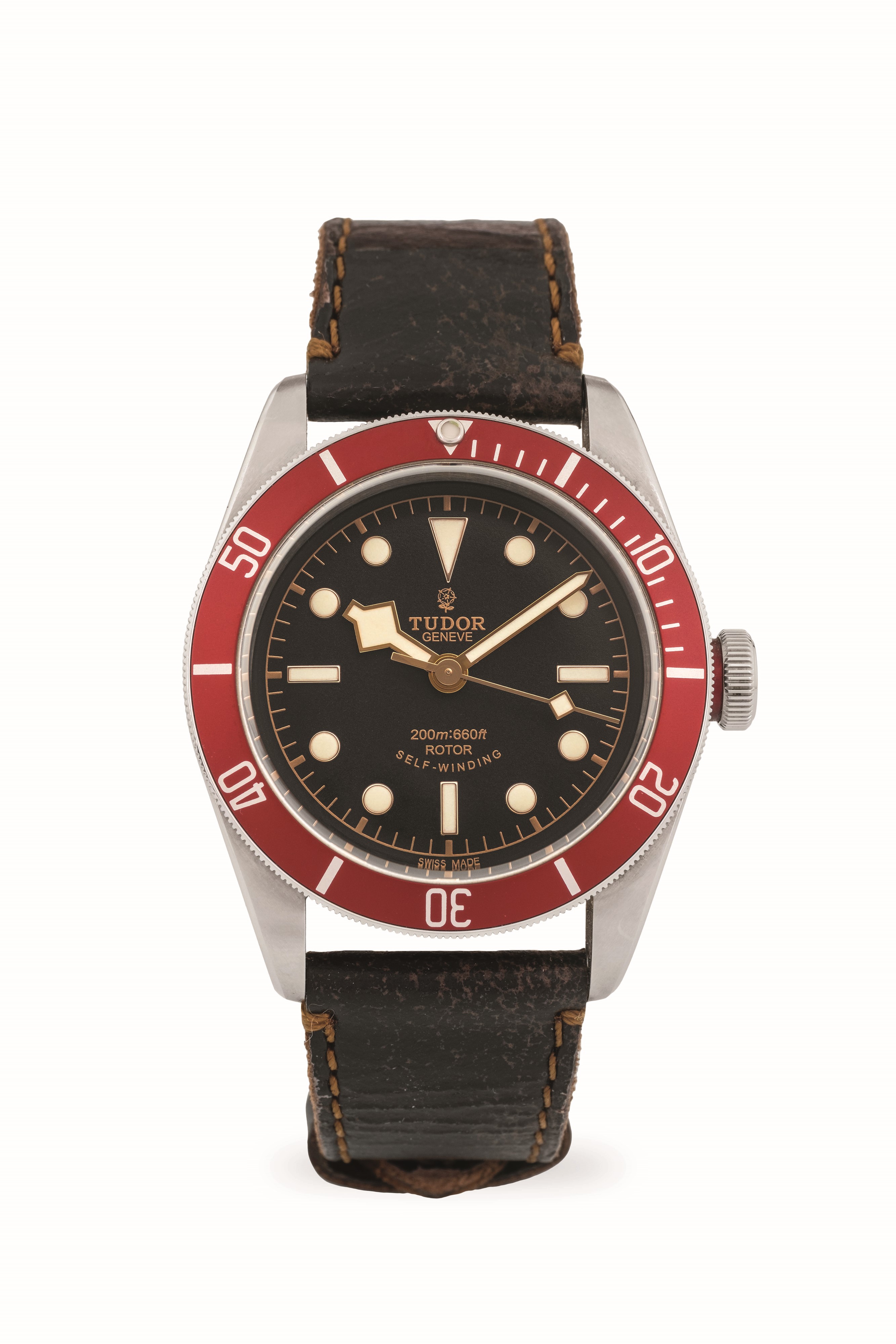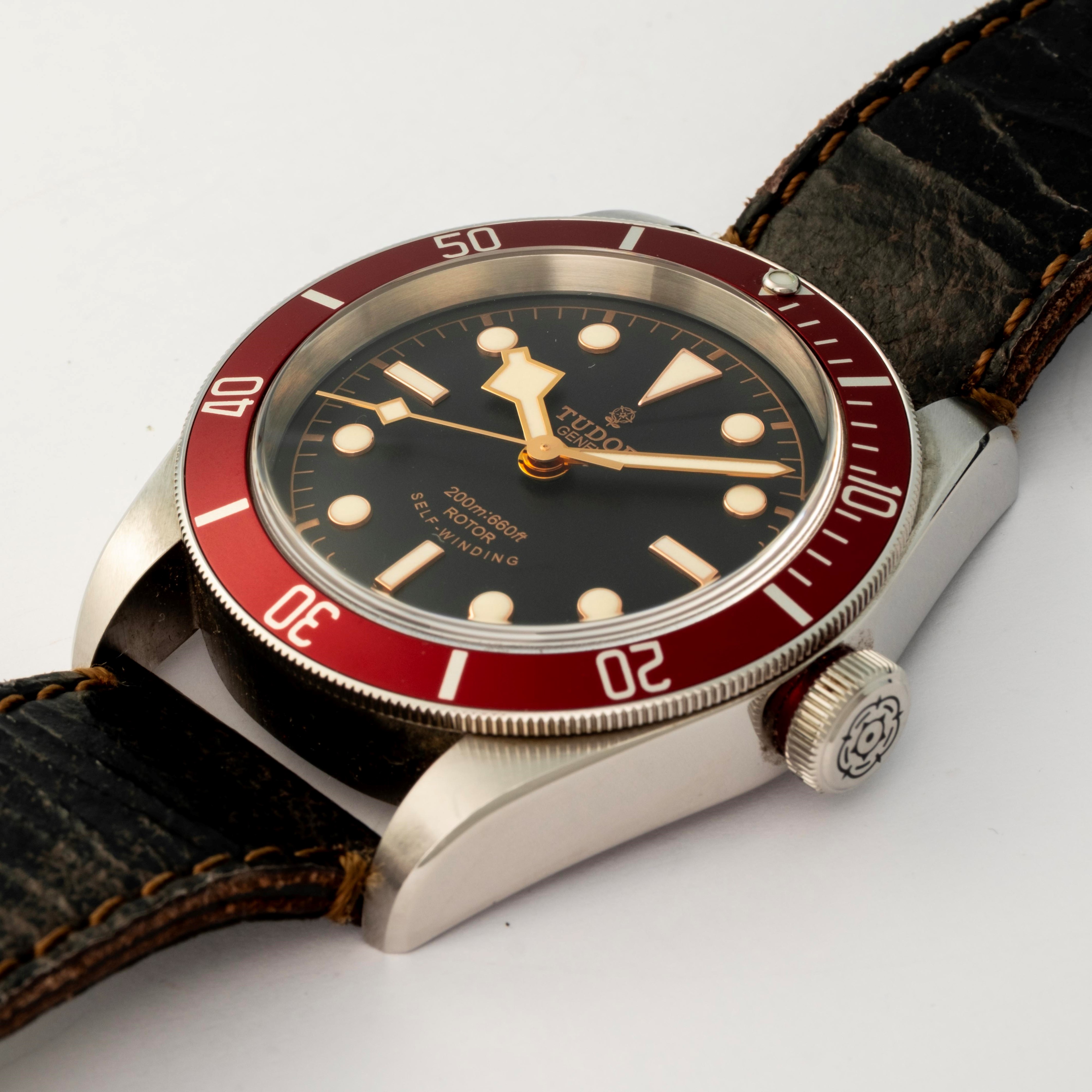Black Bay ref. 79220R in acciaio con quadrante nero e ghiera rossa, con cinturino in pelle e chiusura originale, circa 2014