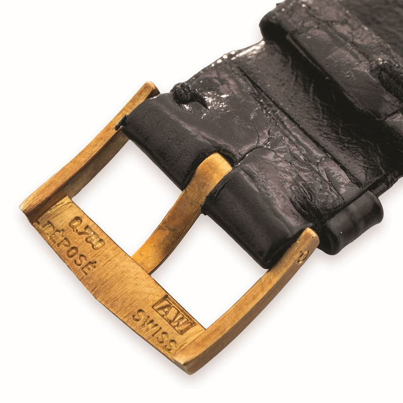 Solo tempo carica manuale con cassa tonneau in oro giallo 18k, circa 1970