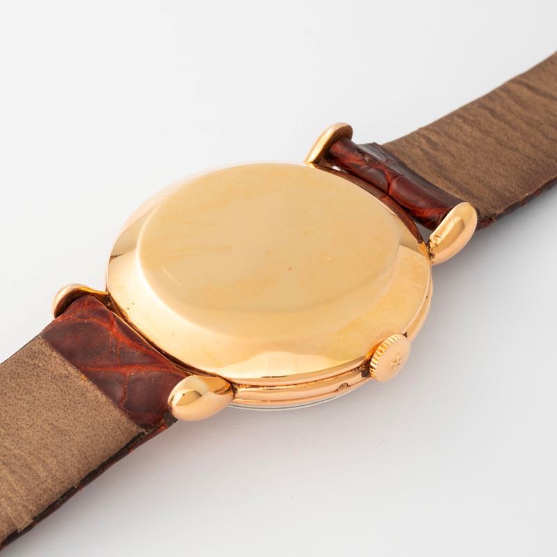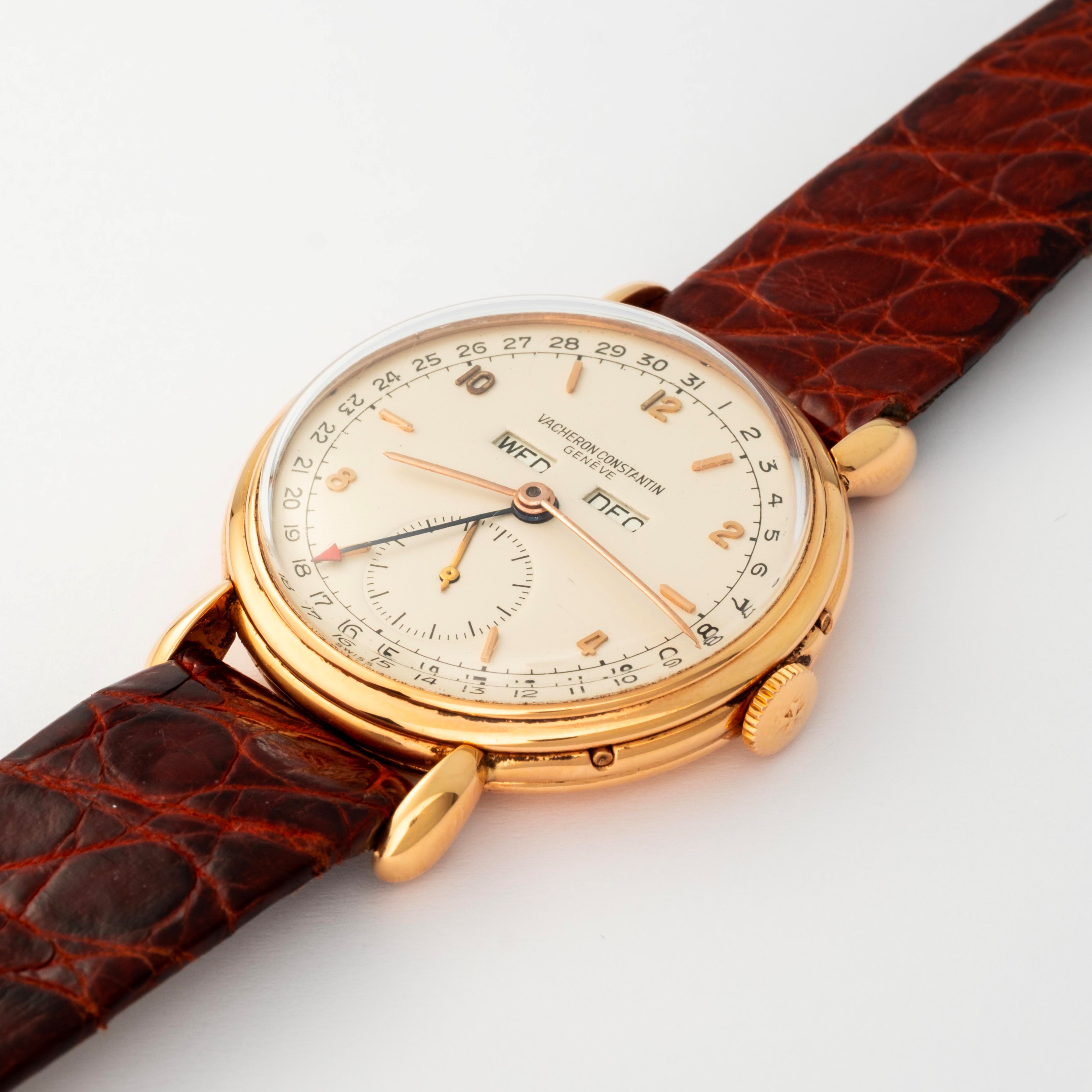Triplo calendario in oro giallo 18k con quadrante virato panna, circa 1940