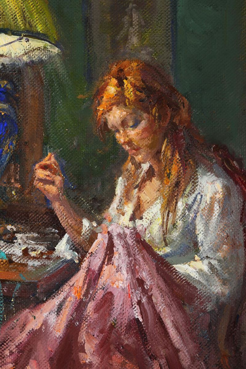 Figura femminile che rammenda