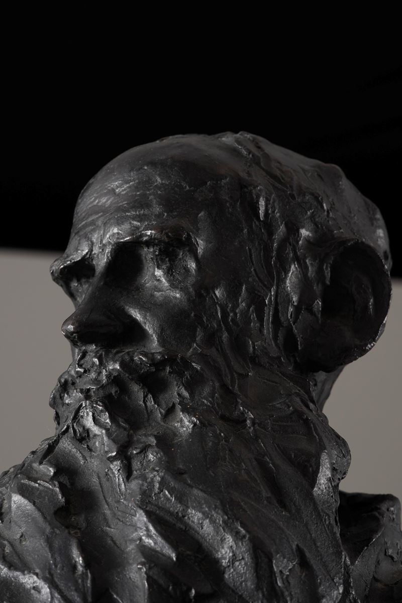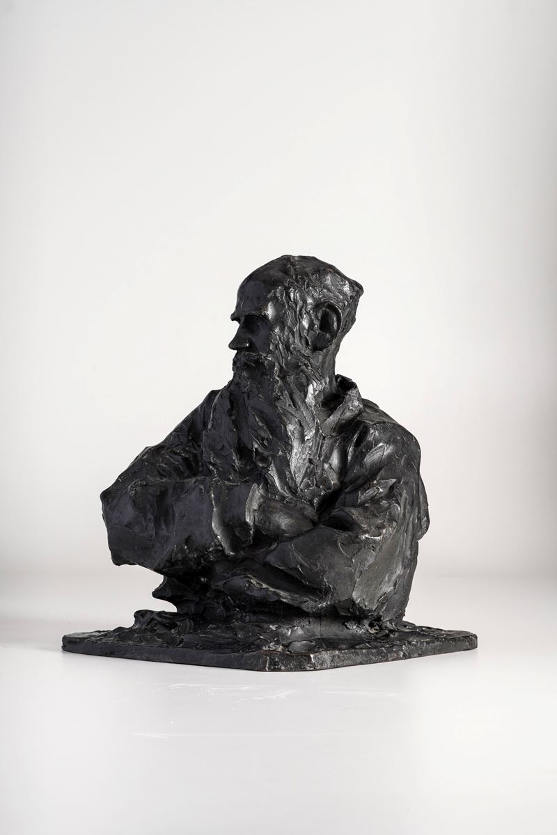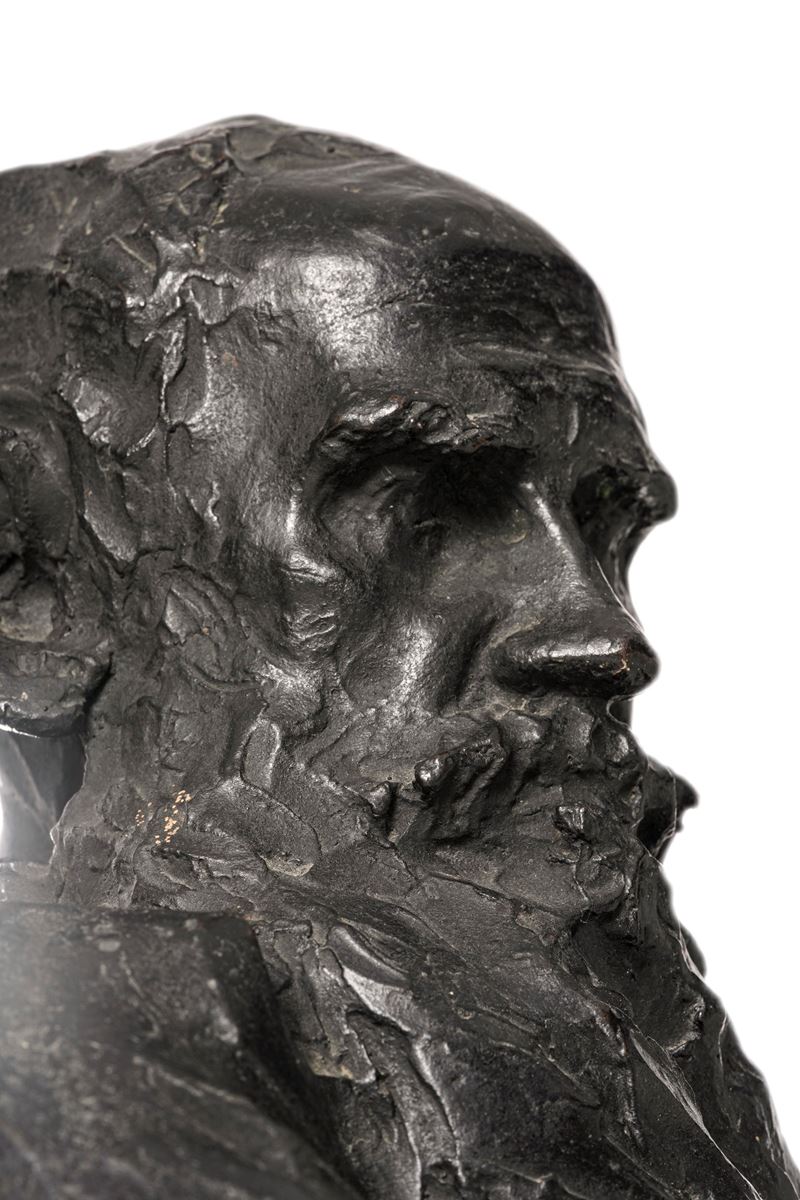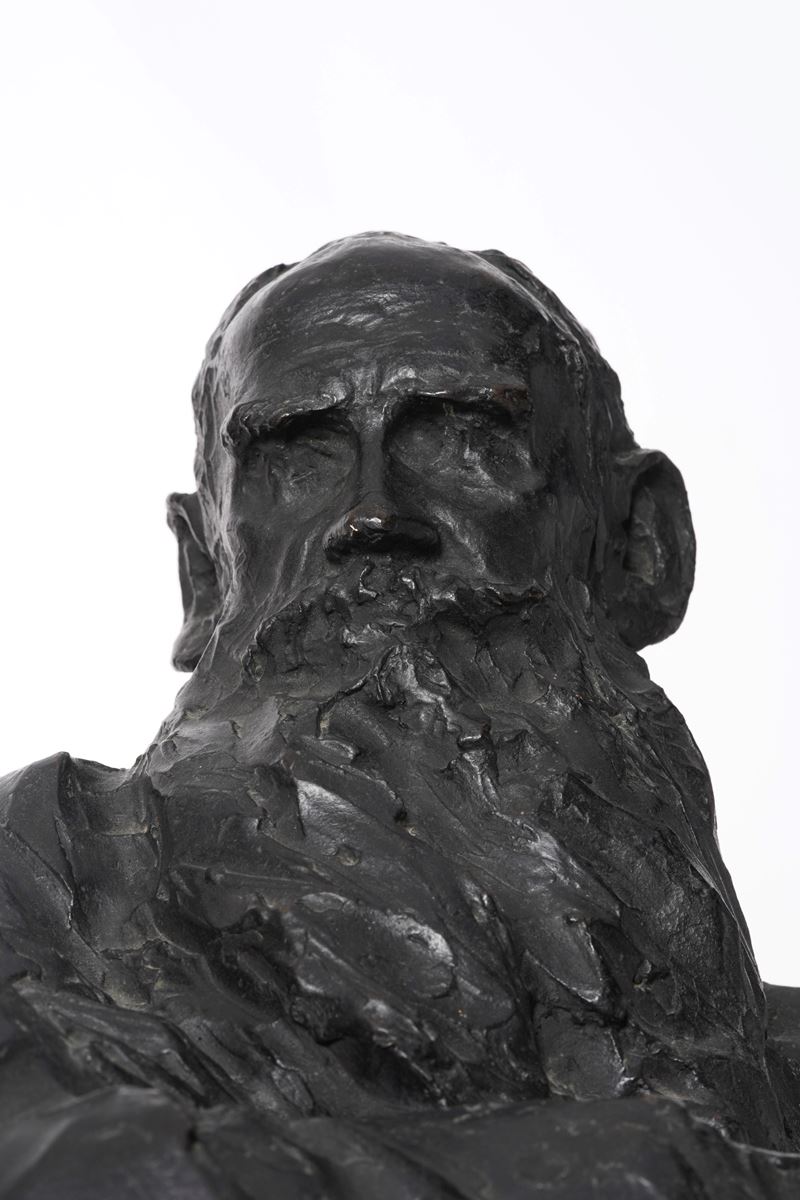 Accompagnato da copia della lettera in data 8 febbraio 1980 di John S. Grioni che ne conferma l'autenticità: "[...] Questo piccolo busto di Tolstoi a braccia conserte venne plasmato nella casa del romanziere a Jasnaja Poljana, dove Troubetzkoy fu ospite sovente fra il I898 e il 1910 durante i suoi soggiorni russi; la data