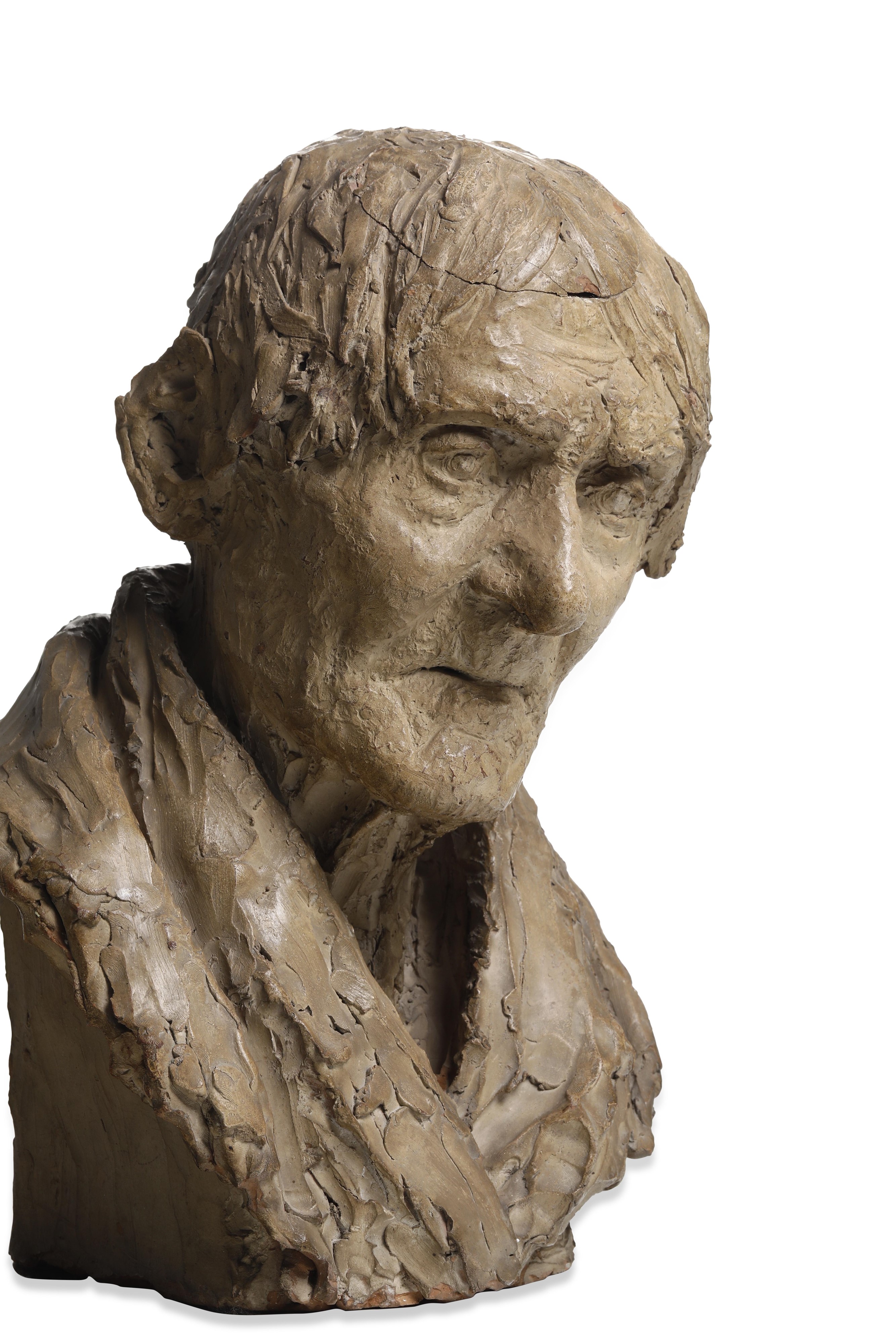 Questa rara terracotta riconducibile a Vincenzo Gemito si riferisce, verosimilmente, al periodo giovanile della sua produzione, anche se il ritratto è il genere che lo contraddistingue e che praticherà tutta la vita. L'argilla è la materia preferita di Gemito, quella che traduce meglio l'immediatezza del suo gesto artistico e in questo mezzobusto lo scultore ci mostra la propria abilità nel rendere l'espressione e la fisionomia dell'anziano (o anziana) con enorme realismo, lasciando alcune parti solo abbozzate.