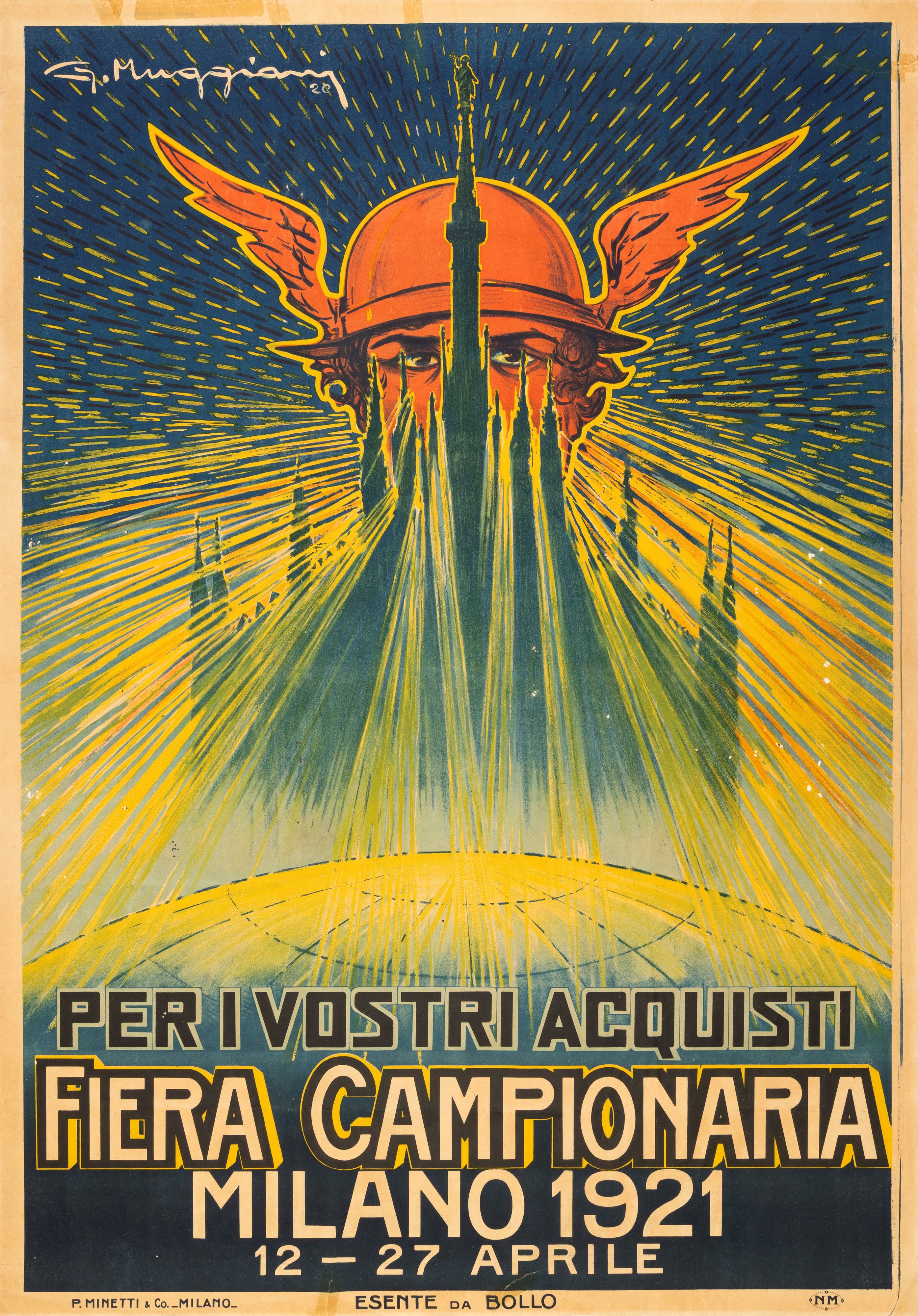 Affisso litografico, 1921. Impresso da P. Minetti- Milano. Cm 100 x 70. Qualità A/B.