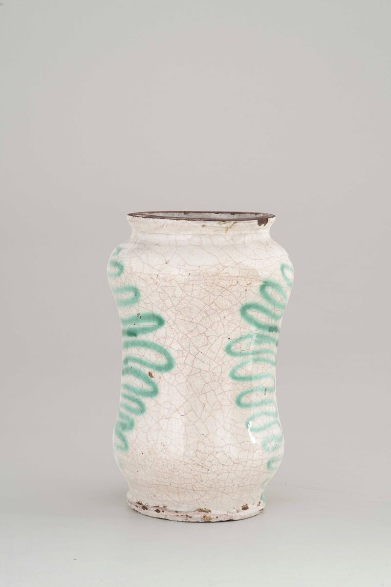 Maiolica. Altezza cm 20. Conservazione: ottima; qualche insignificante sbeccatura al bordo superiore; sottili craquelures