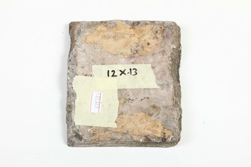 Terracotta smaltata. Dimensioni: spessore cm 2; cm 13x12.