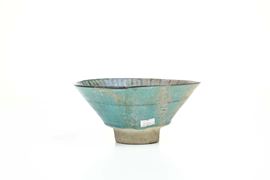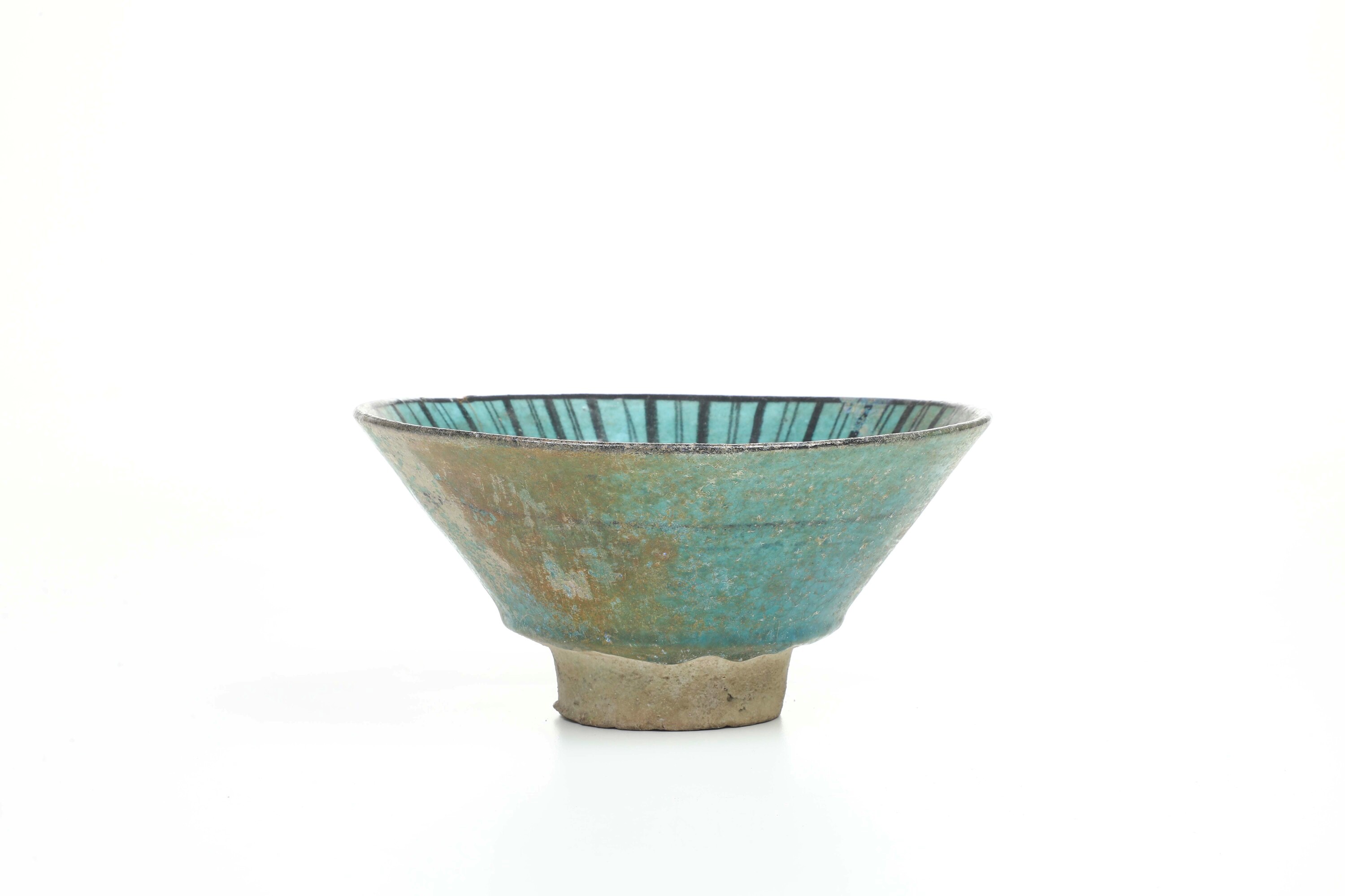 Pasta artificiale ("fritta"). Dimensioni: altezza cm 8,8; diametro cm 19. Conservazione: buona; una rottura al bordo superiore ricomposta in restauro. Sul fondo un frammento di altra ciotola depositatosi durante la cottura e integrato.