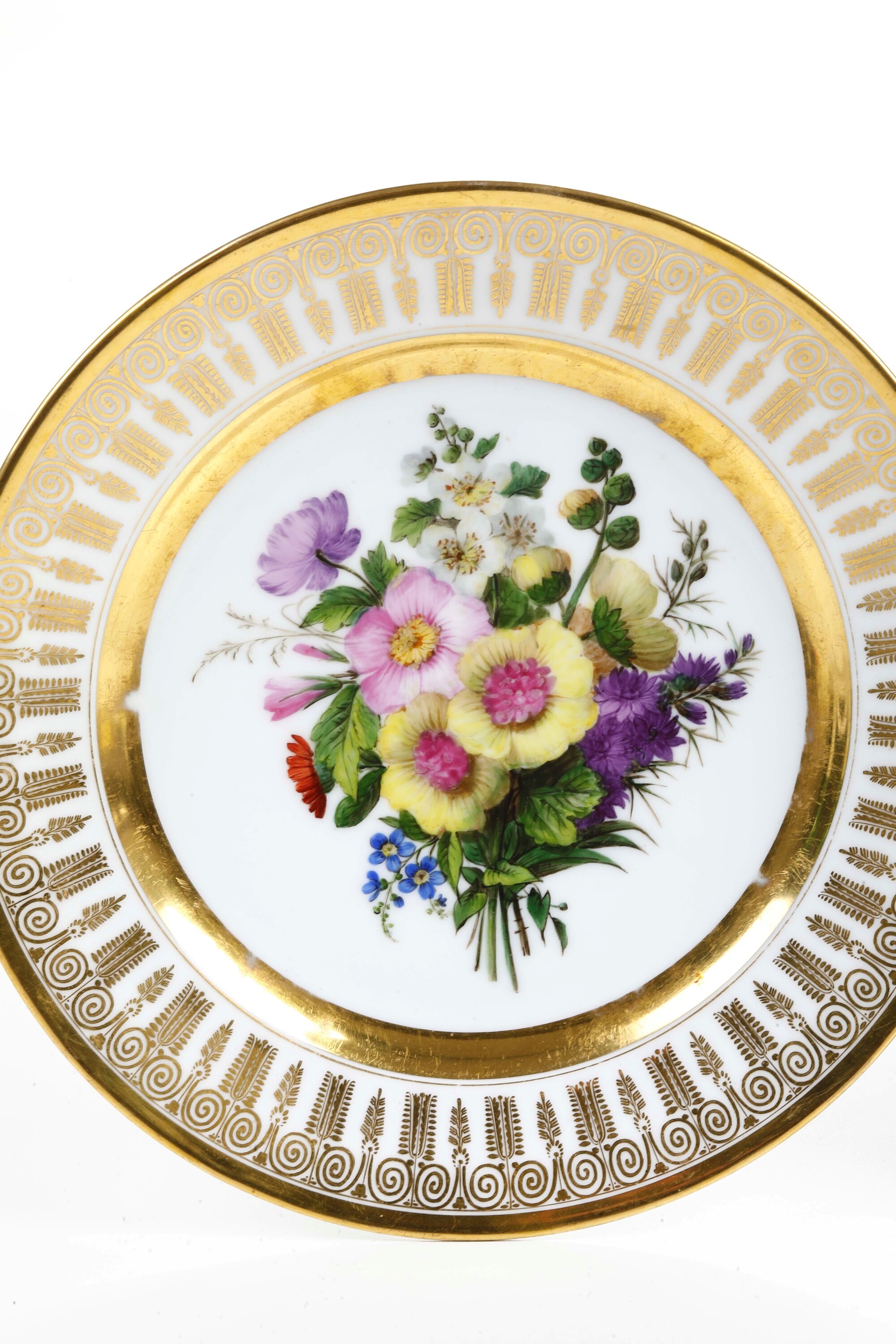 Porcellana. Marca: assente. Diametro cm 22,1. Conservzione: qualche piccola usura all’oro