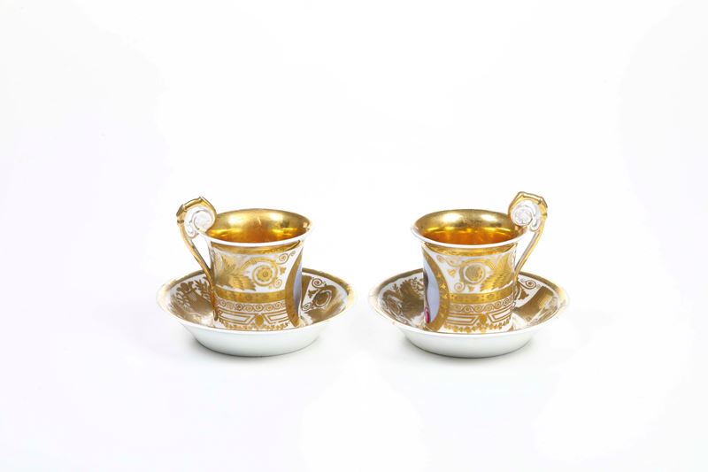 Coppia di tazze con piattino Russia, Verbilki (Mosca), Manifattura Gardner, 1810 circa