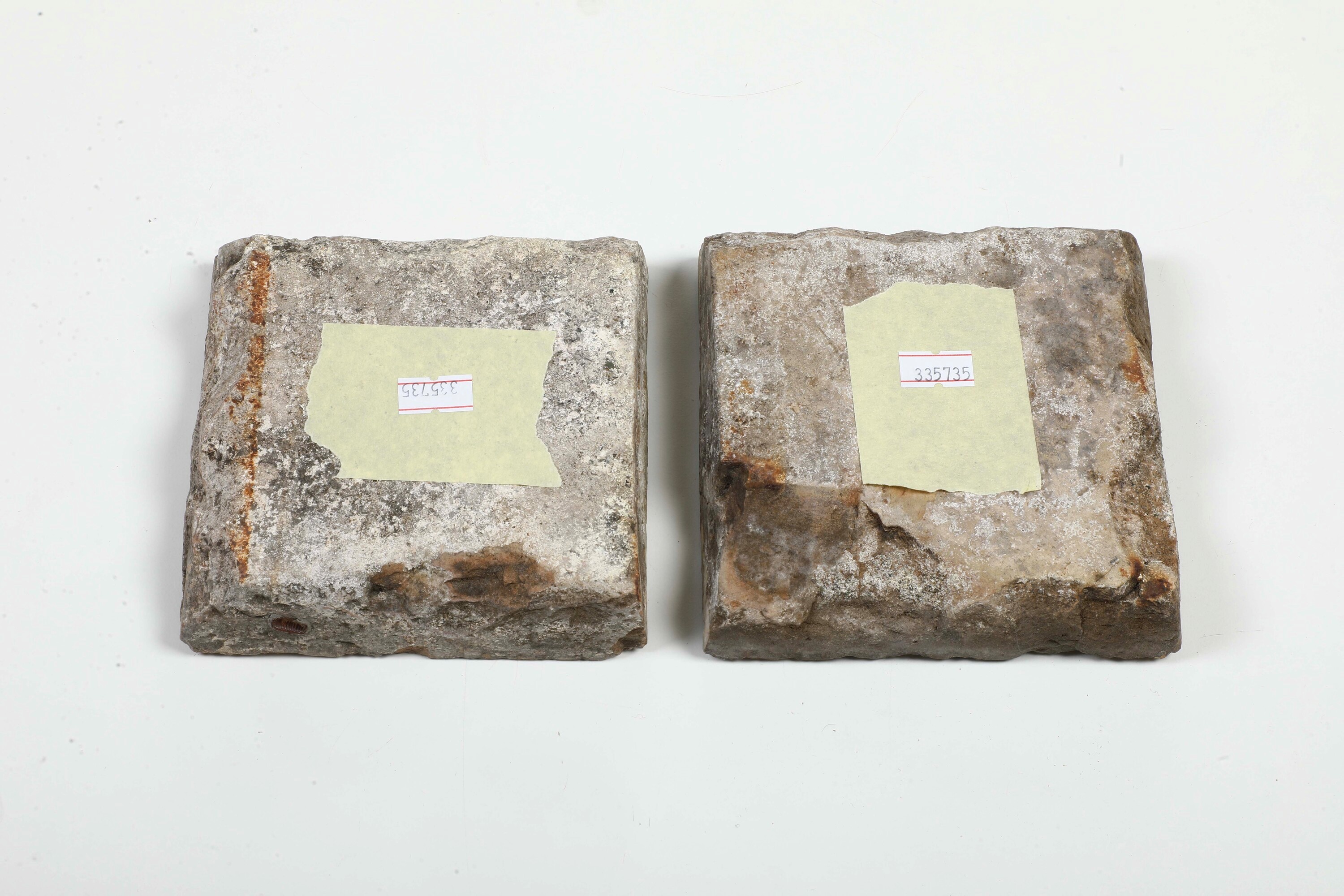 Terracotta smaltata. Dimensioni: spessore cm 2,7; cm 13,5x13,5. Conservazione: buona; qualche sbeccatura ai bordi