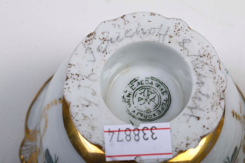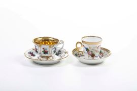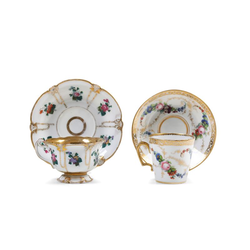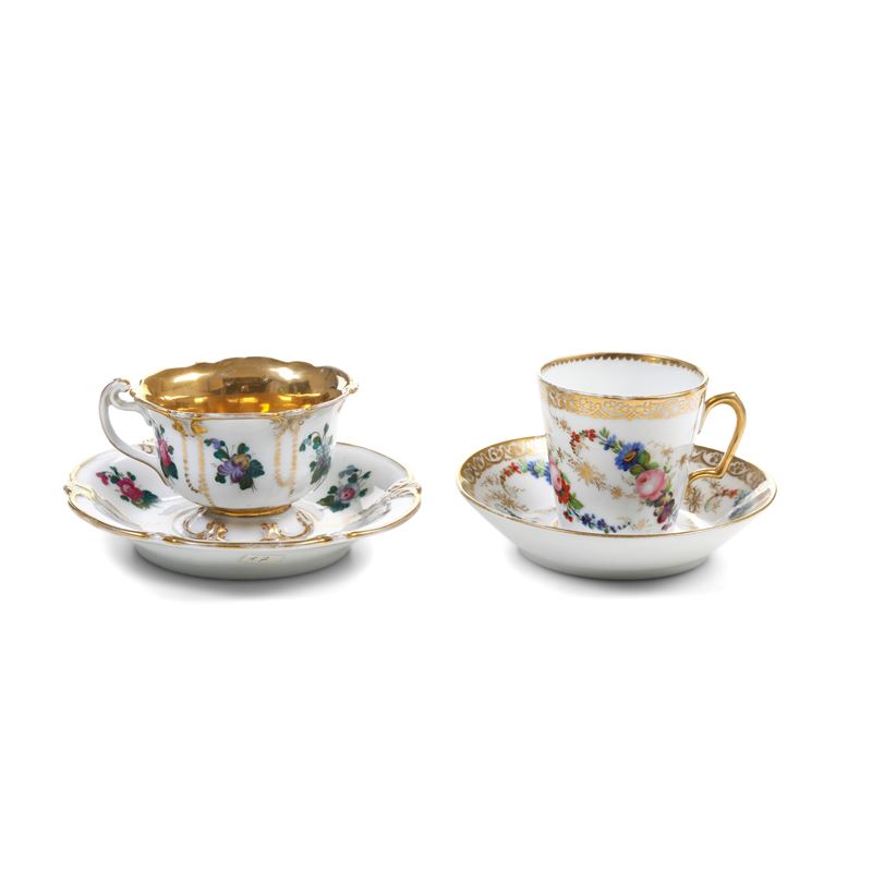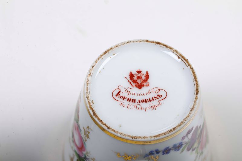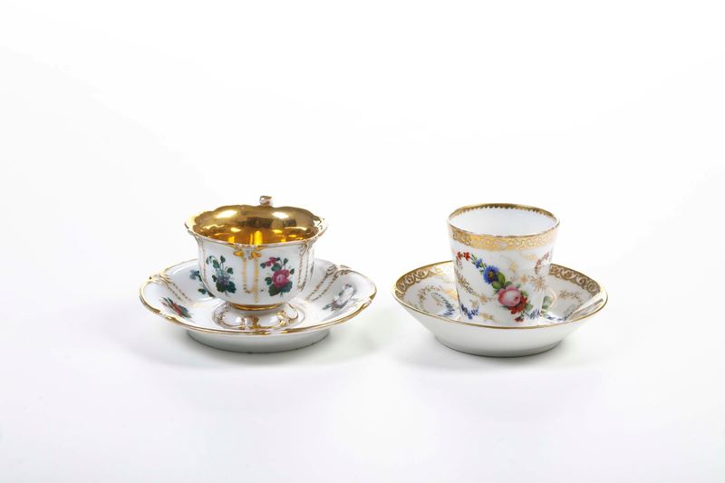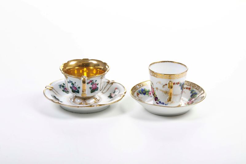 Due tazze con piattino Russia, Manifattura di Retchitski (Mosca) e San Pietroburgo, Manifattura Kornilov, 1850 circa