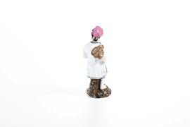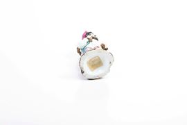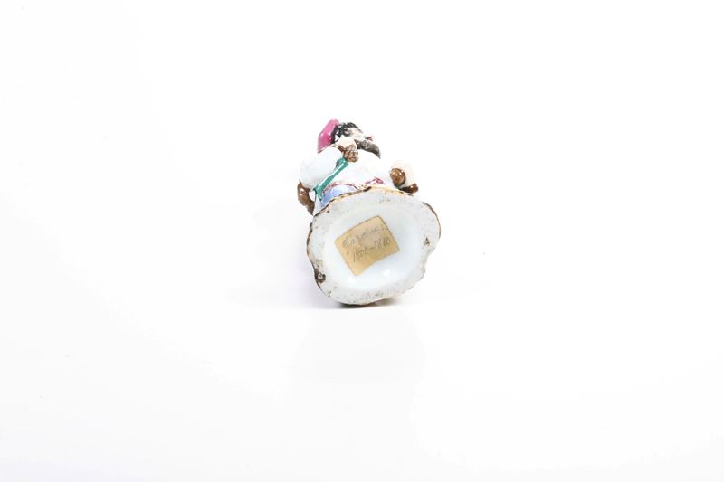 Porcellana policroma e dorata. Marca: assente. Altezza cm 14,3. Conservazione: testa riattaccata in restauro; salti di smalto al nero del cappello