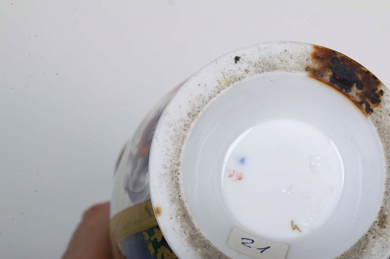 Porcellana. Marca: impressa in cirillico. Altezza cm 18,7. Conservazione: rotta in più frammenti e ricomposta
