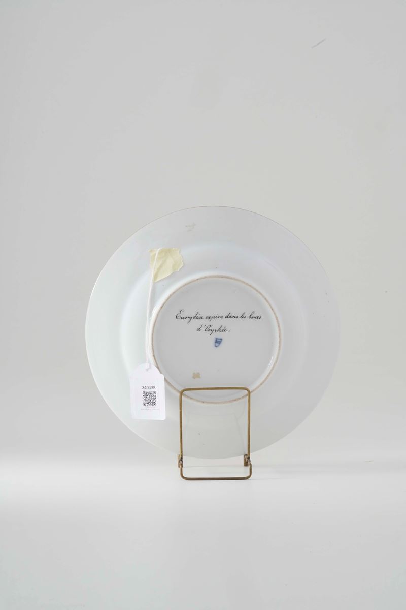 Il piatto raffigura Euridice che muore tra le braccia di Orfeo, come riportato dall'iscrizione sul verso: "Eurydice expira dans les bras d'Orphée".