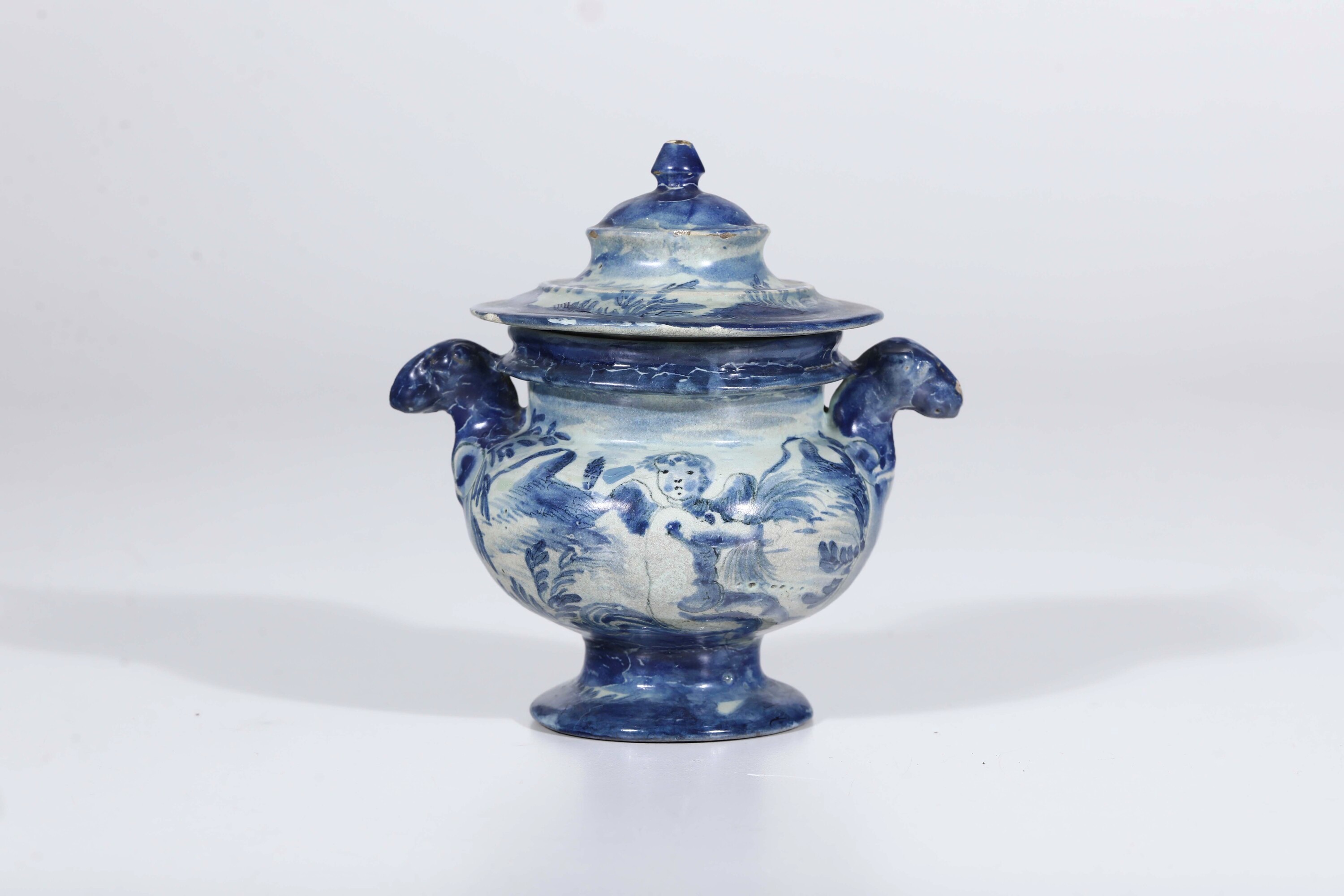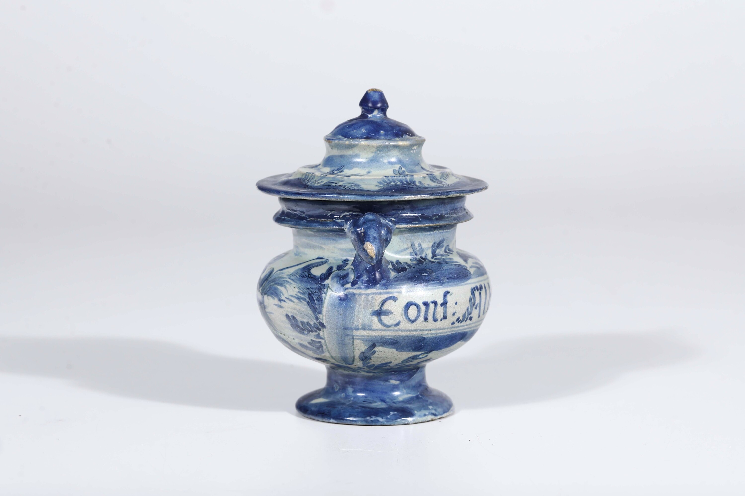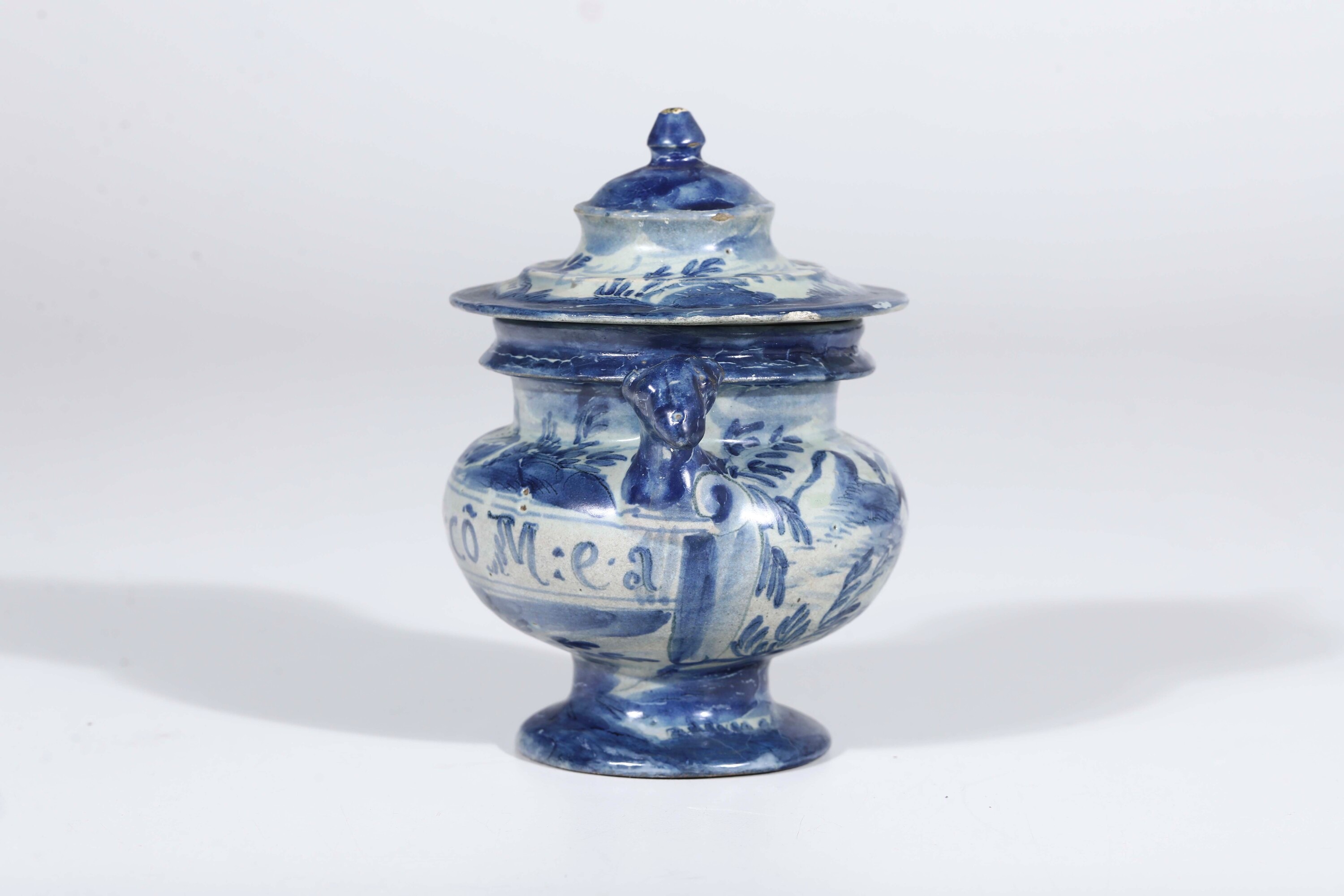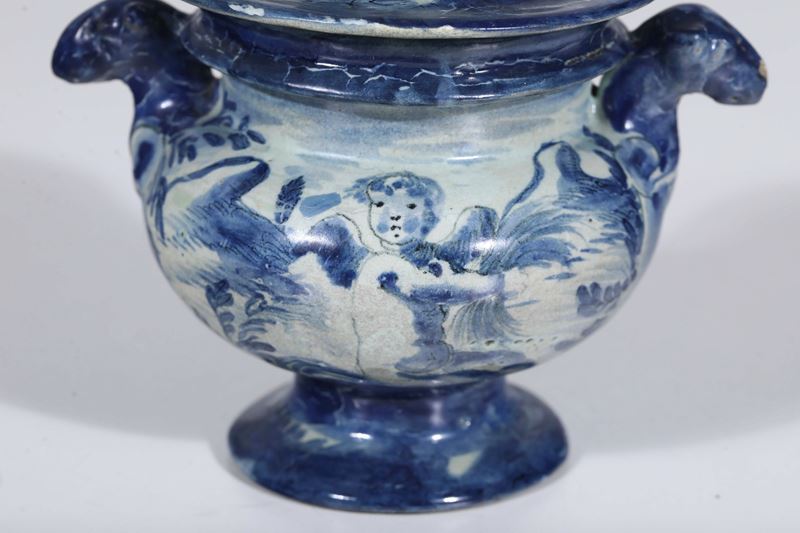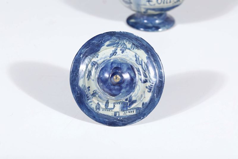 Maiolica. Marca: stemma di Savona. Altezza totale cm 16,5. Conservazione: restauri