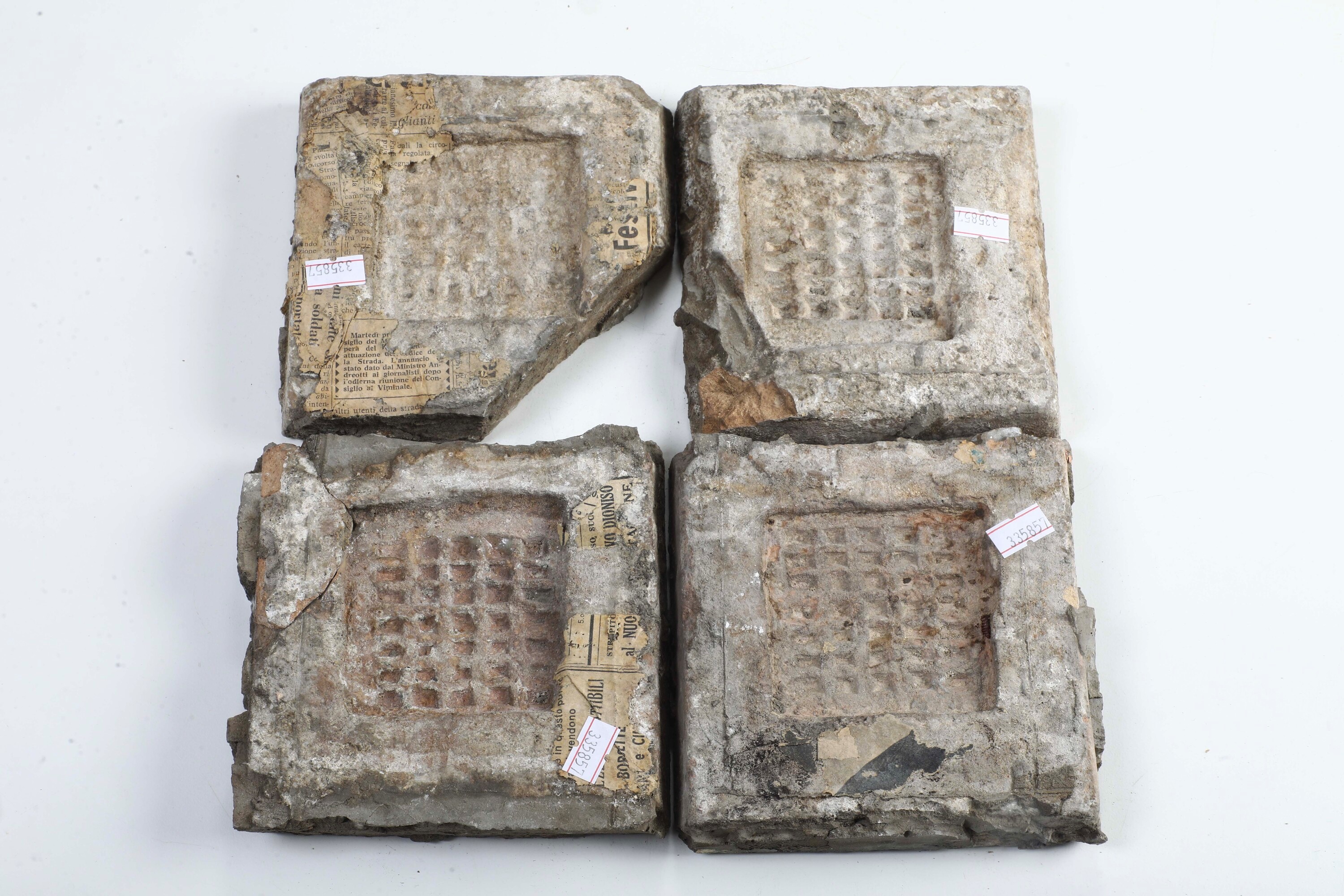 Terracotta smaltata. Dimensioni: spessore cm 2,5; cm 14,5x14,5 circa.
