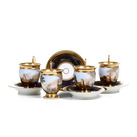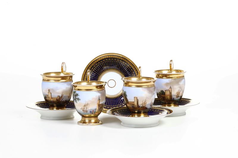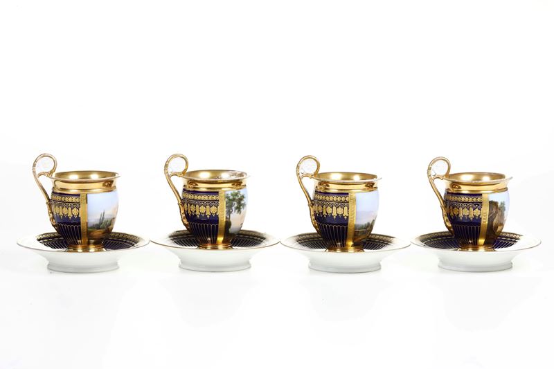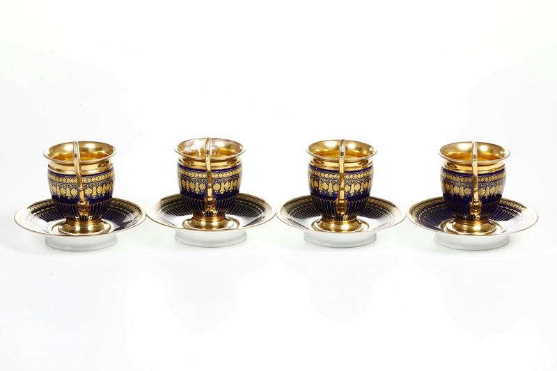 Quattro tazze con piattino Probabilmente Parigi, 1830 circa