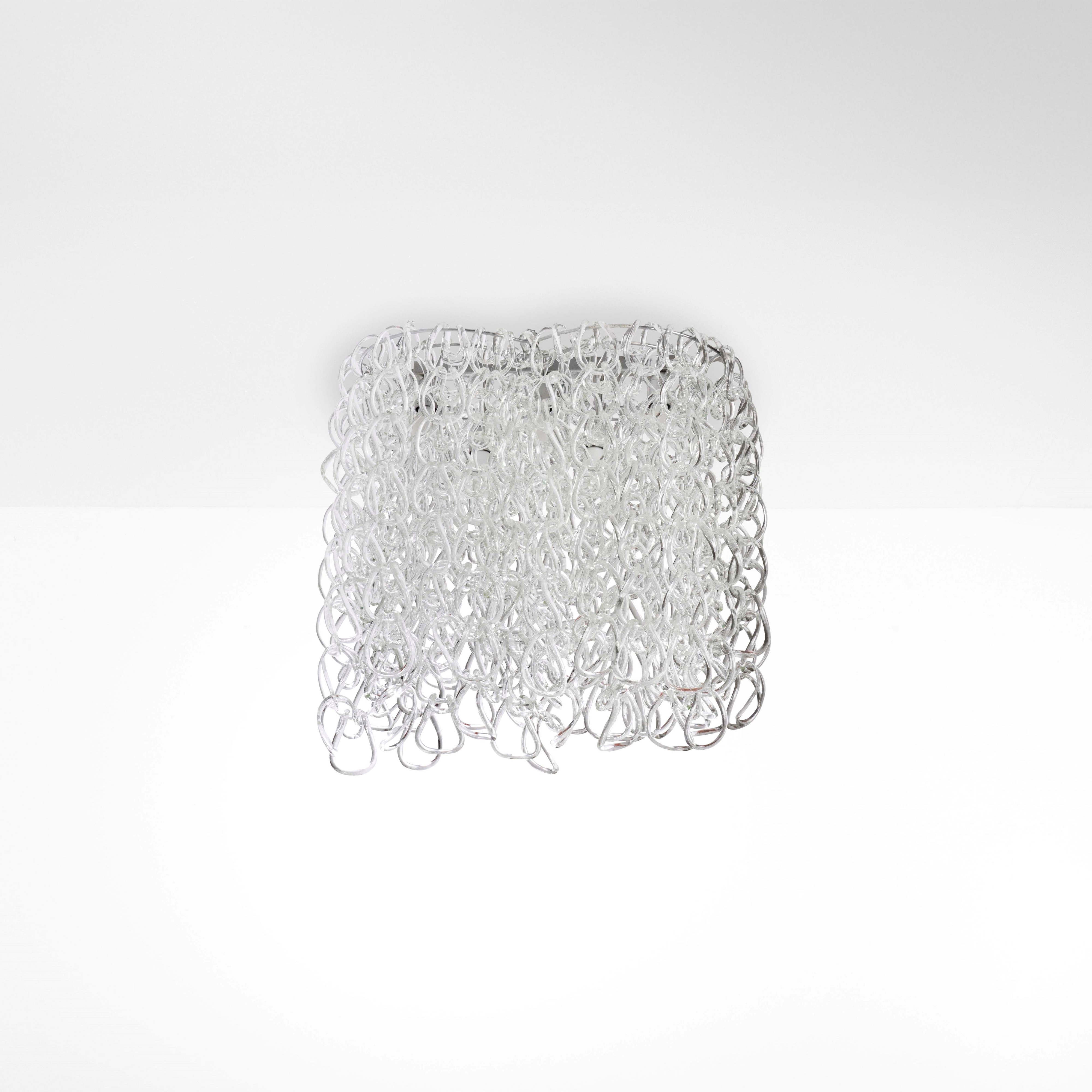 Struttura in metallo ed elementi diffusori in vetro di Murano della serie Sella costituiti da ganci modulari componibili.