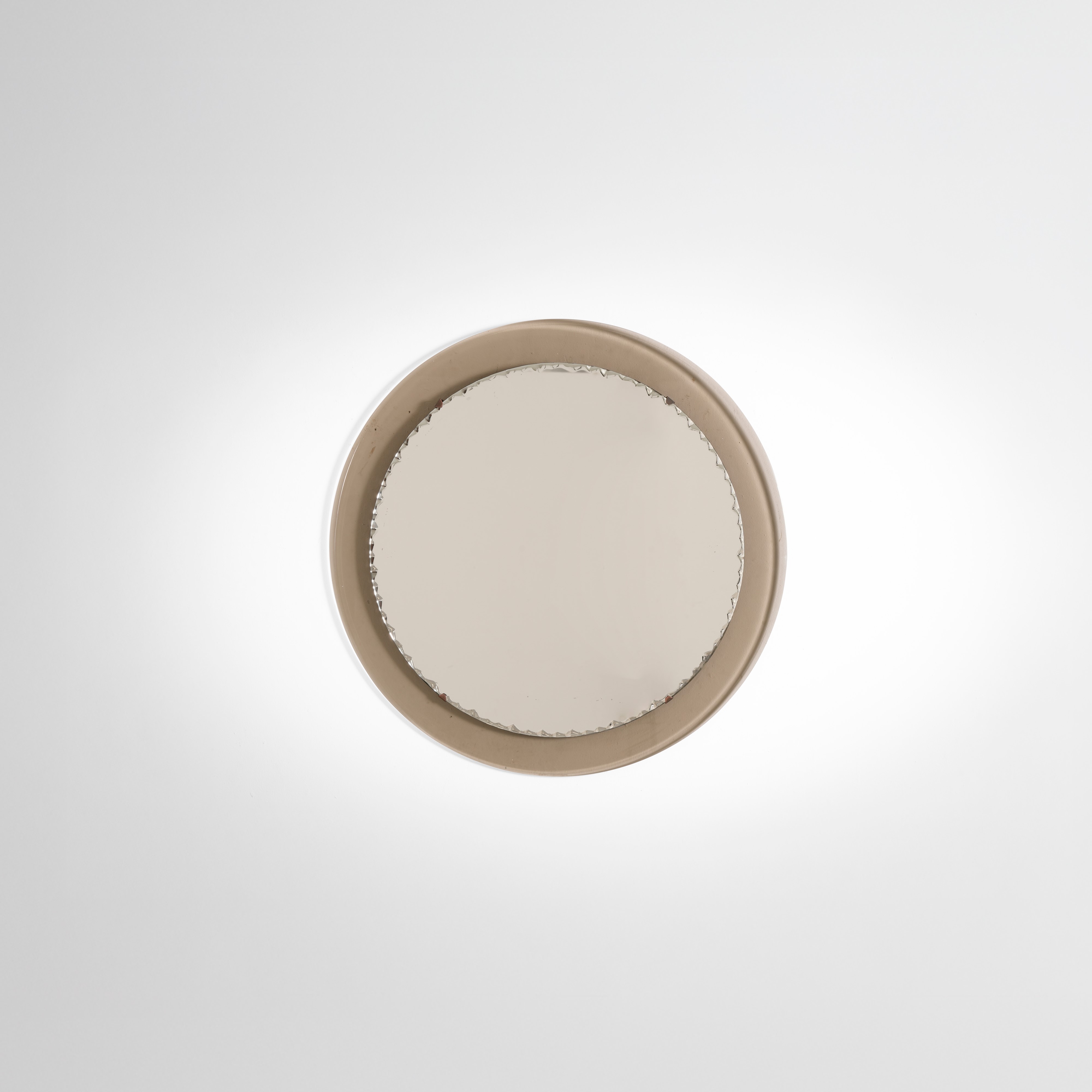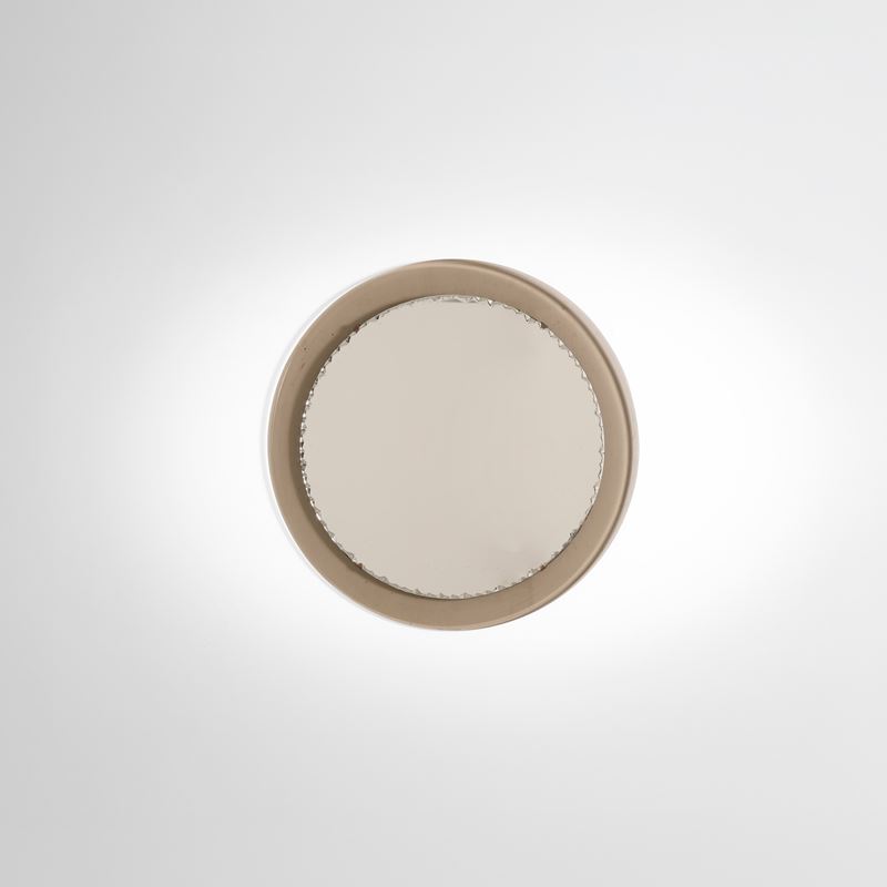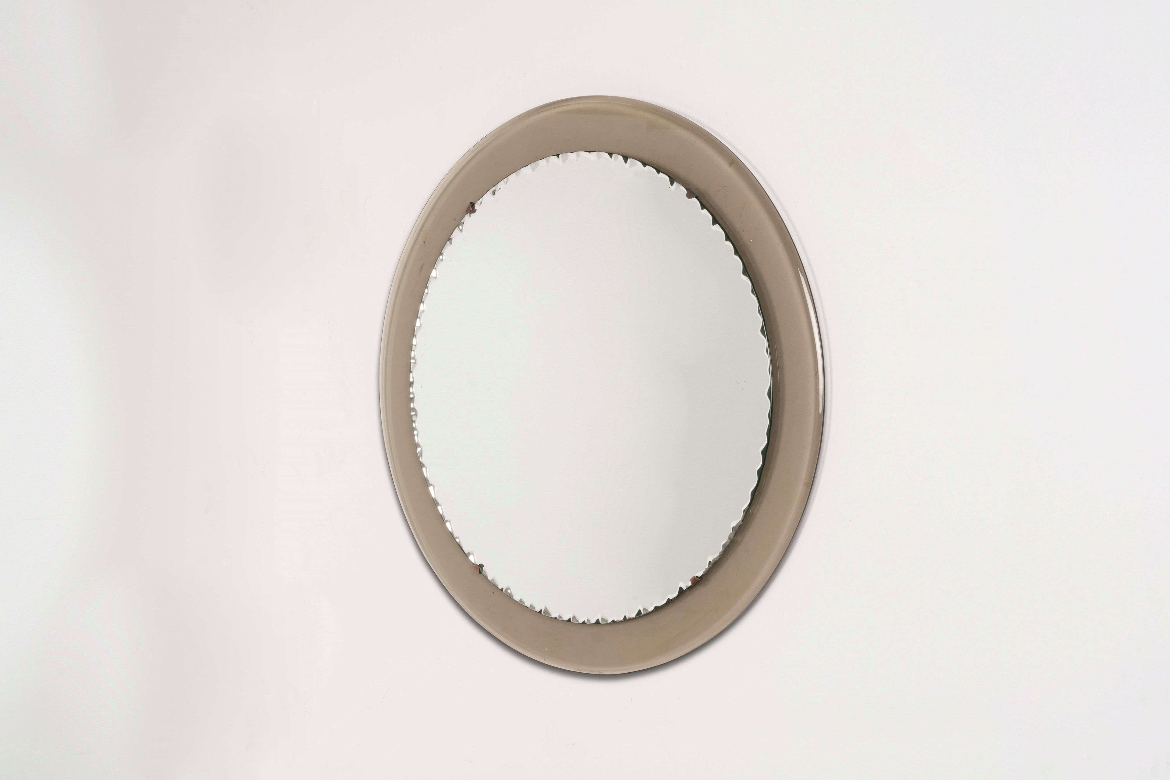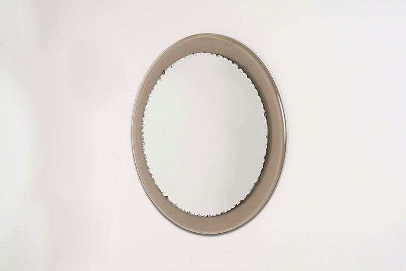 Cornice in vetro fumé e cristallo specchiato e scalpellato.
