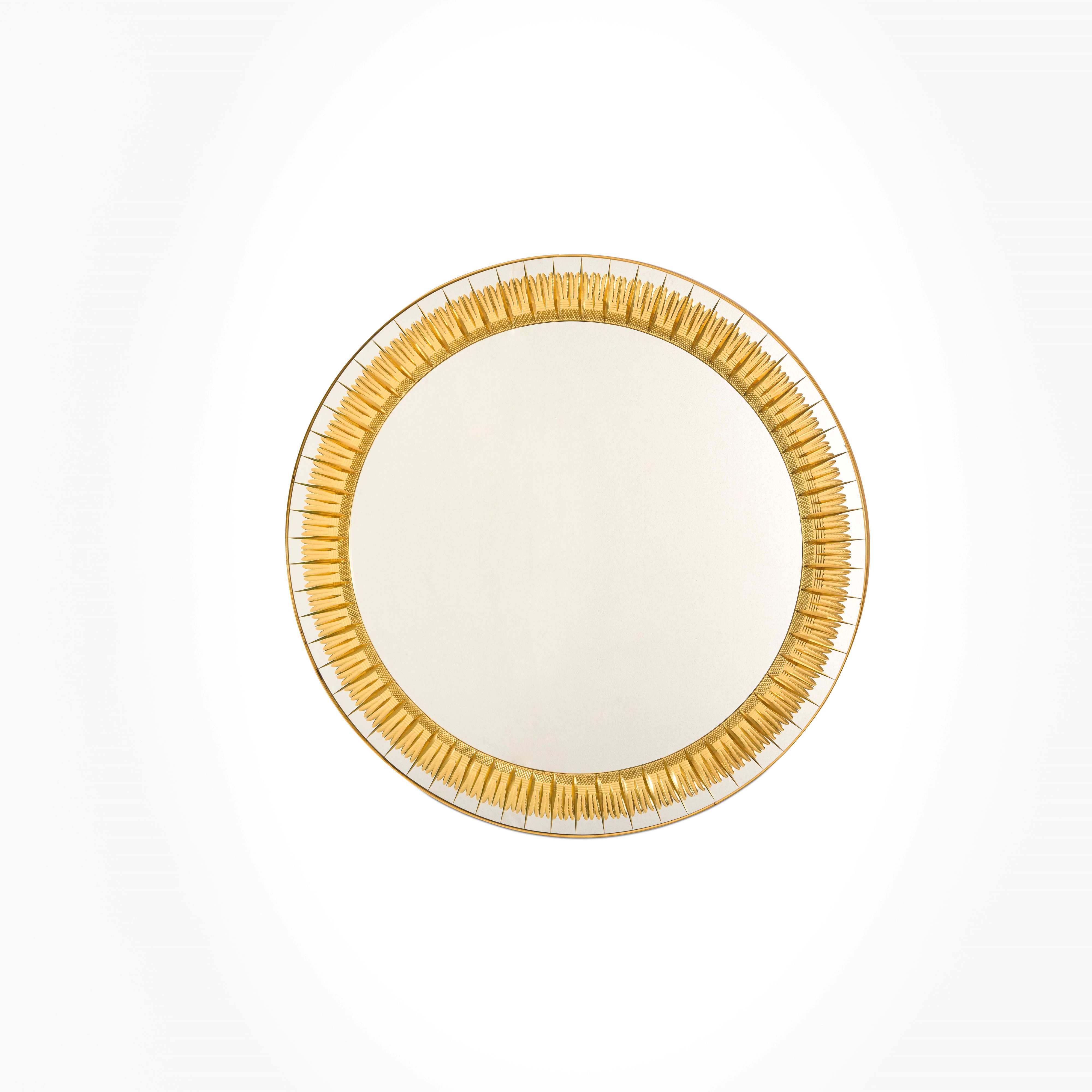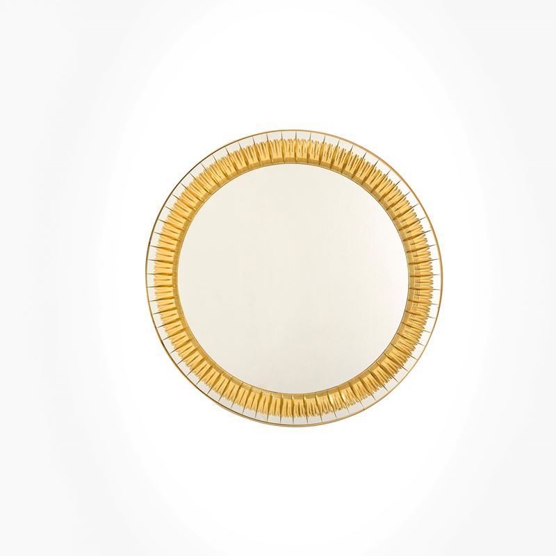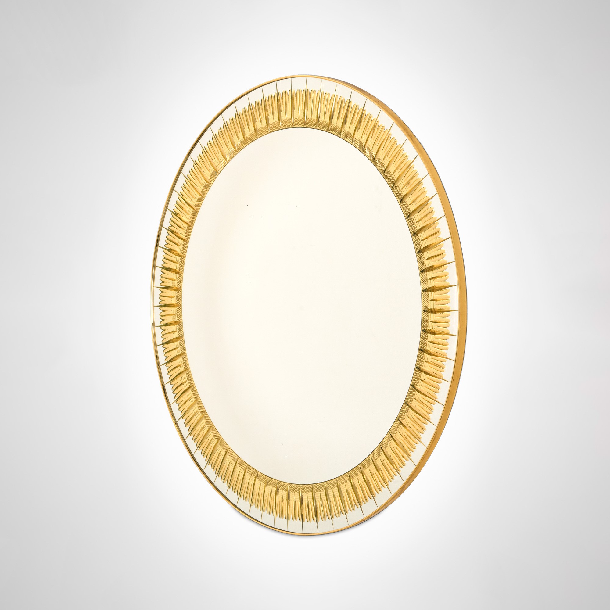 Cornice in cristallo specchiato e vetro dorato con profilo in ottone.