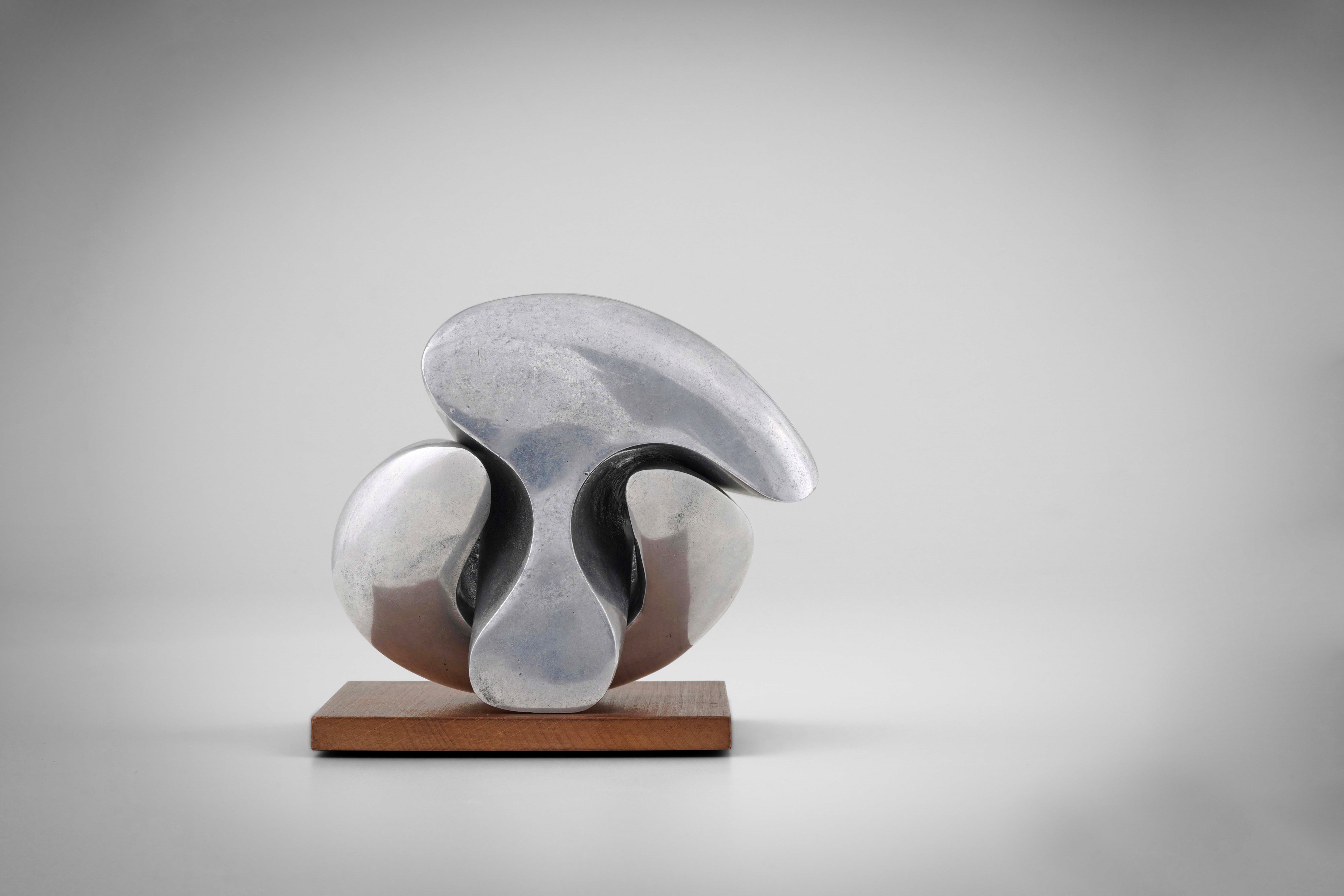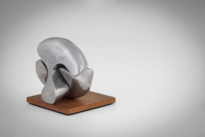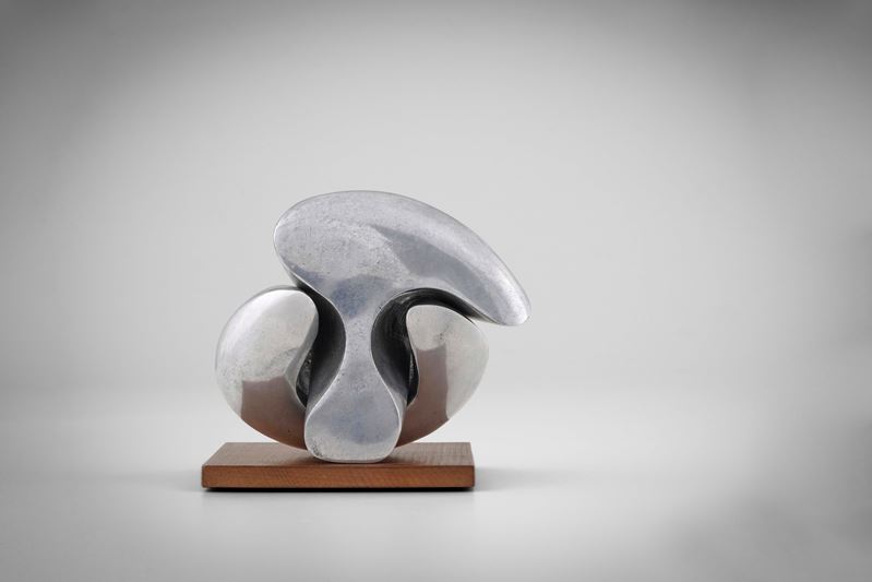 Metallo cromato e base in legno.