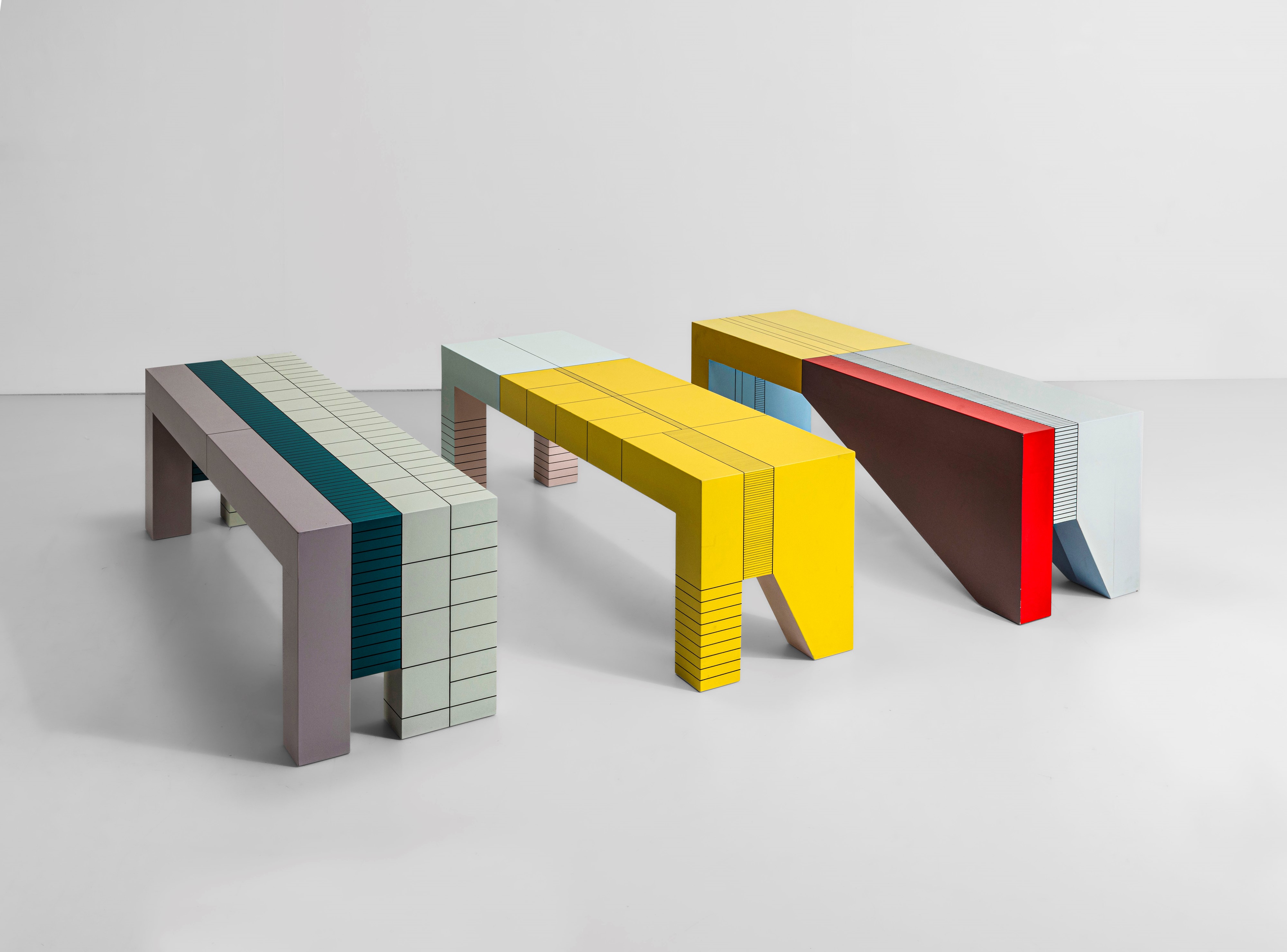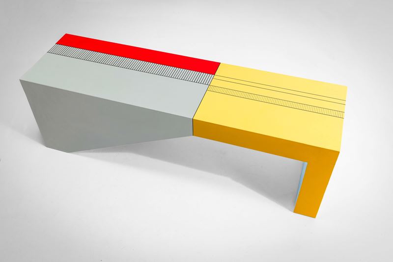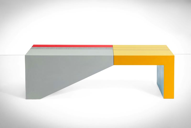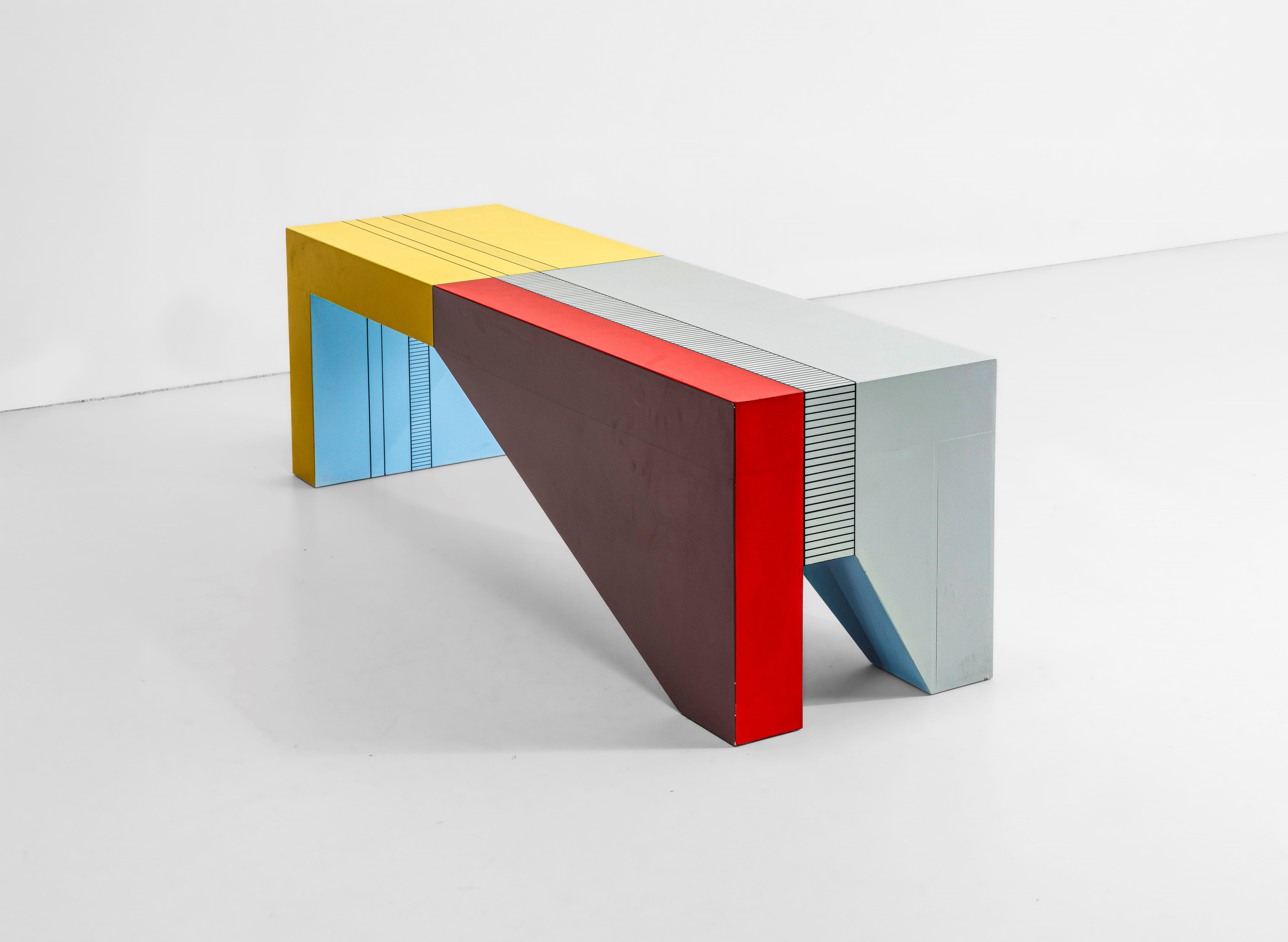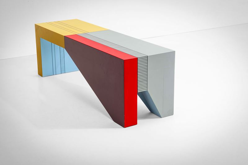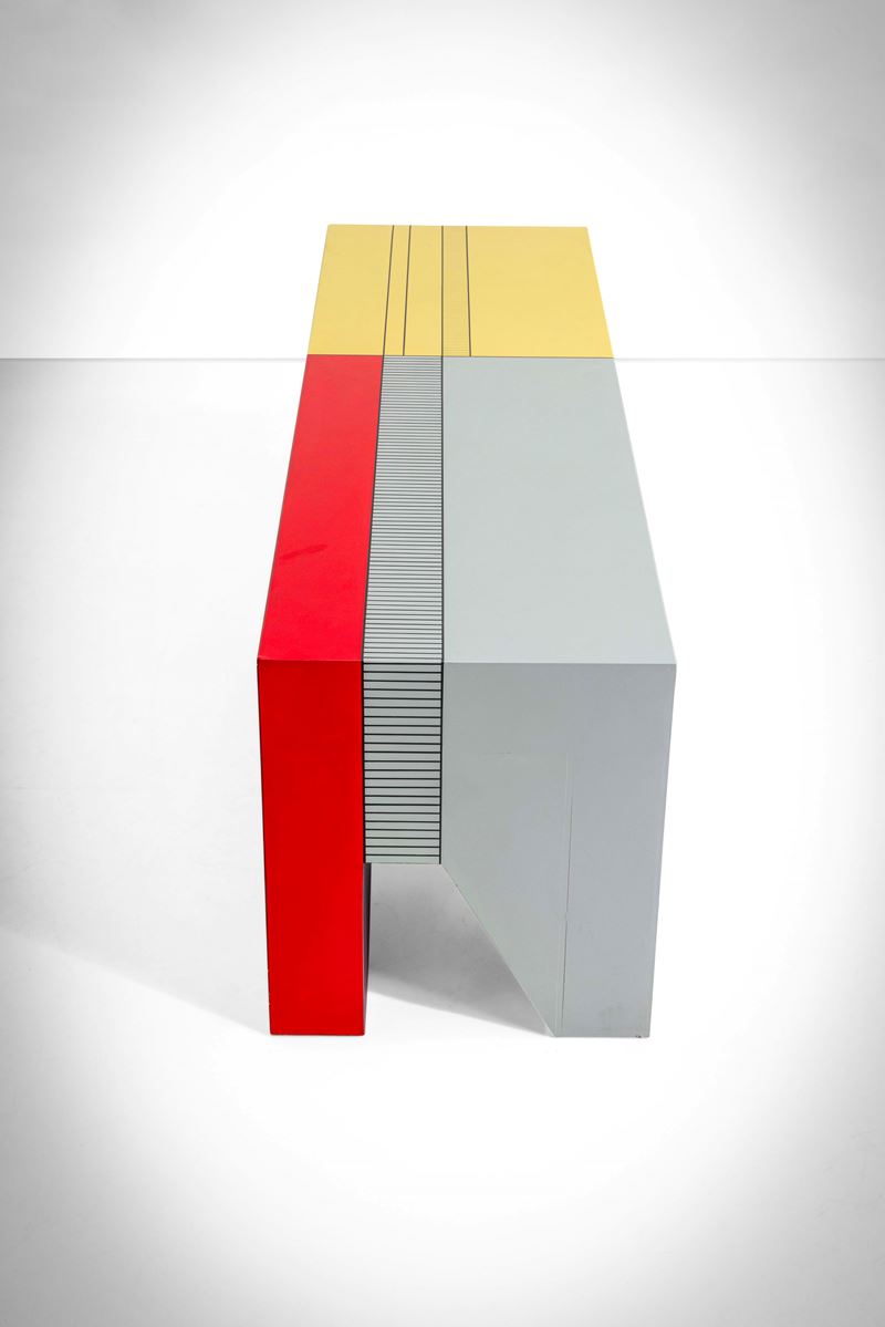 Struttura e piano in legno dipinto.
