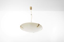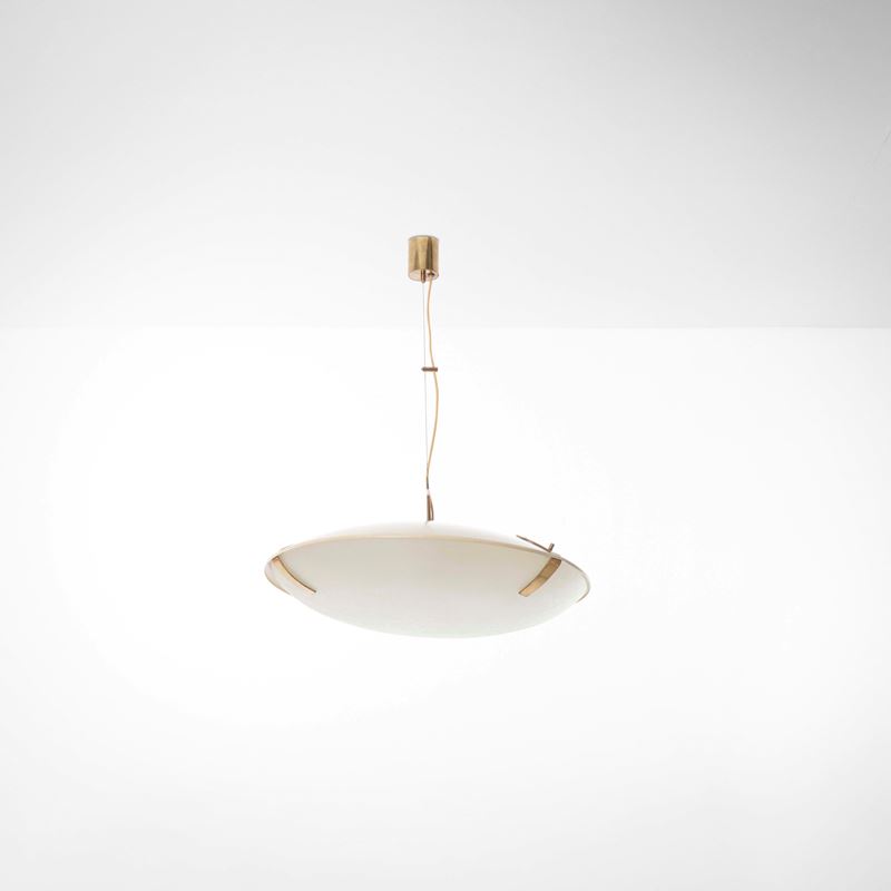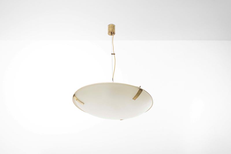 Struttura ad altezza regolabile in ottone, metallo verniciato con diffusore in vetro acidato.