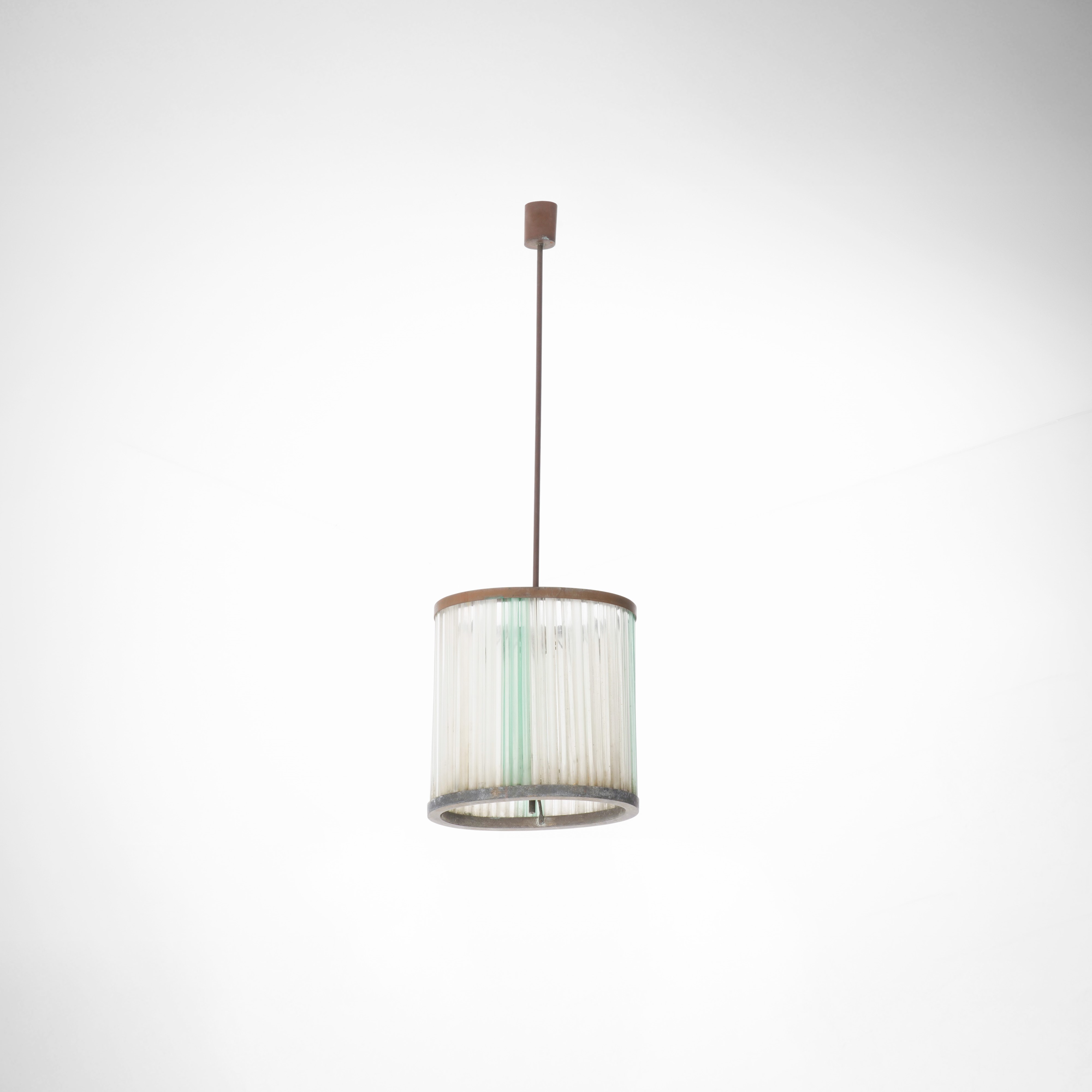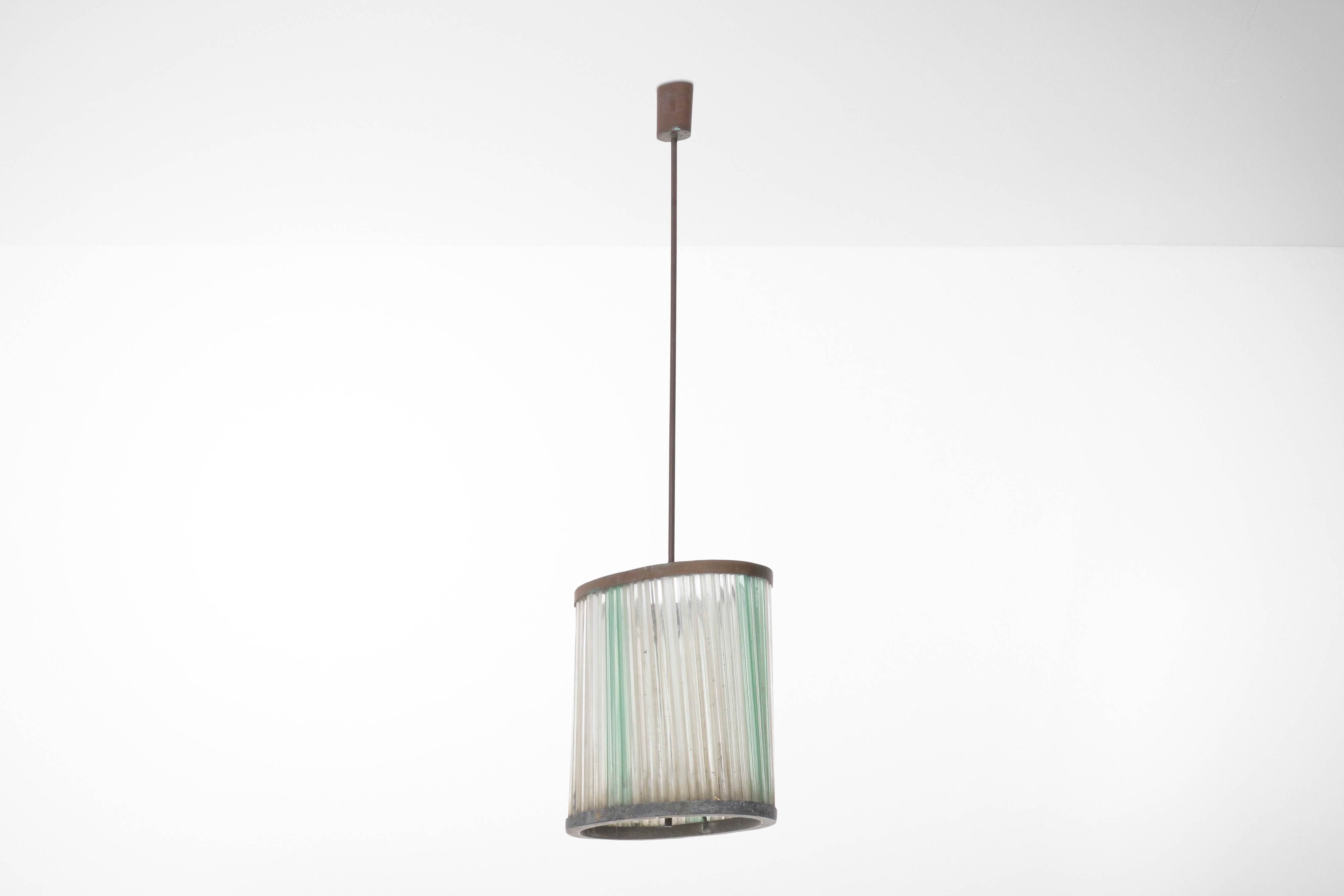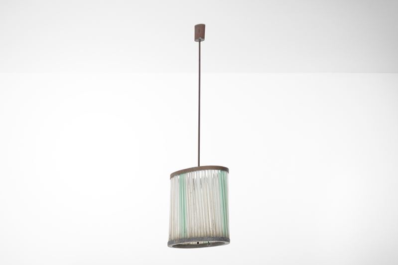 Struttura in metallo con elementi diffusore in canne di vetro di Murano trasparente e colorato.