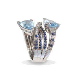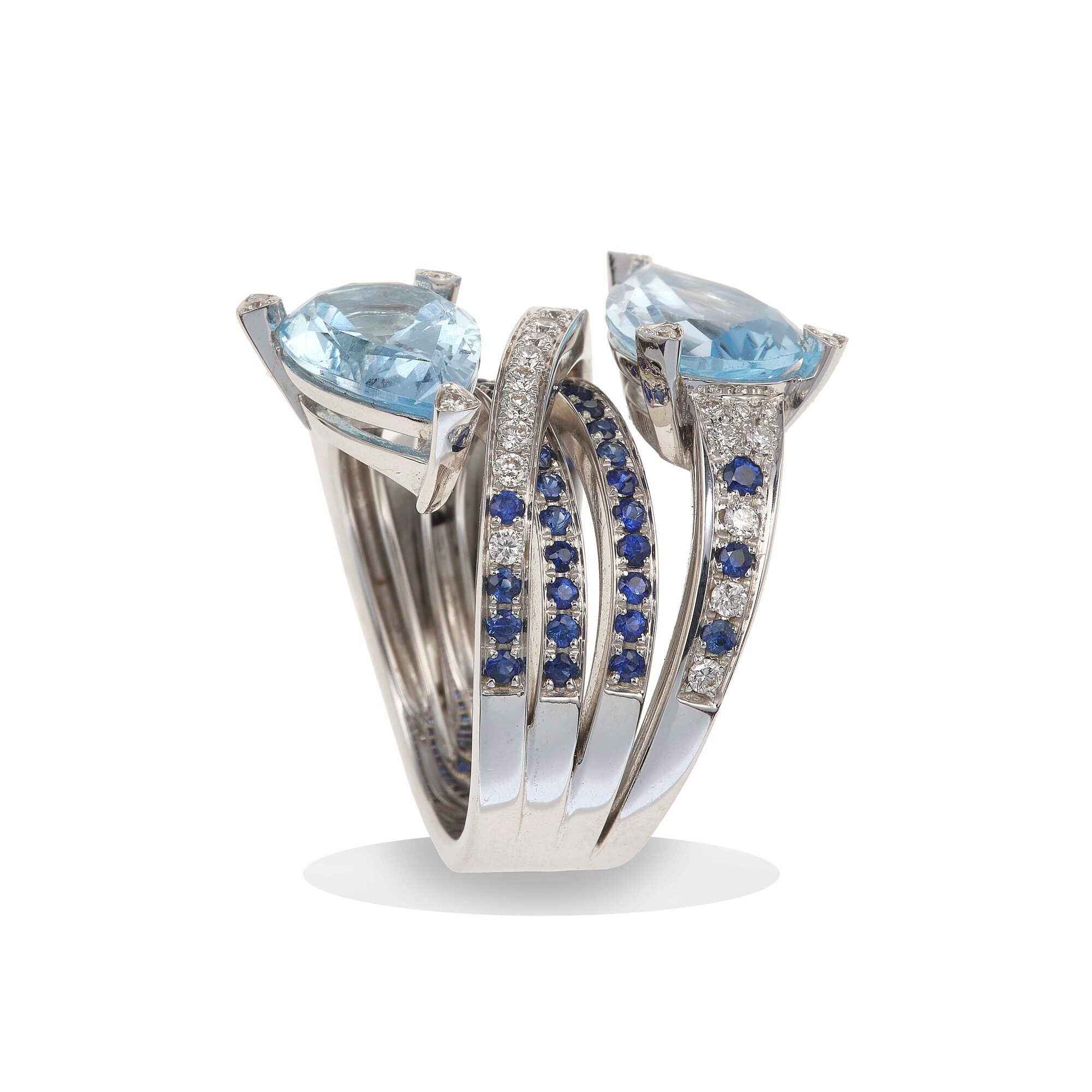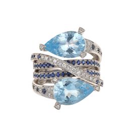 Anello a fasce intrecciate con diamanti, zaffiri e acquemarine