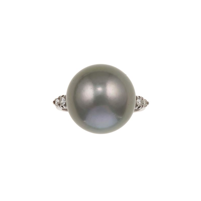 Anello con perla Tahiti e piccoli diamanti