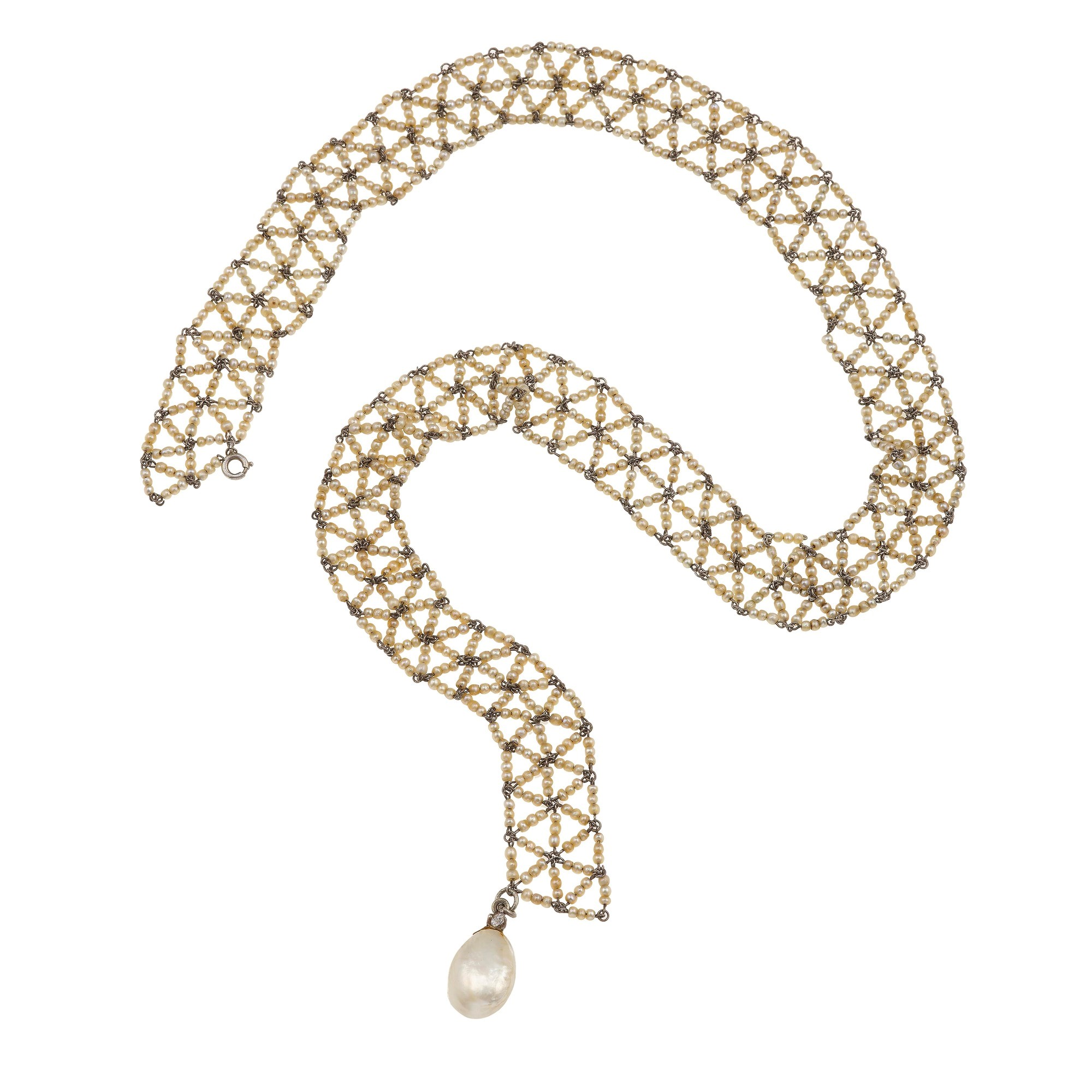 Collana con perla naturale di ct 9.07 e seed pearls