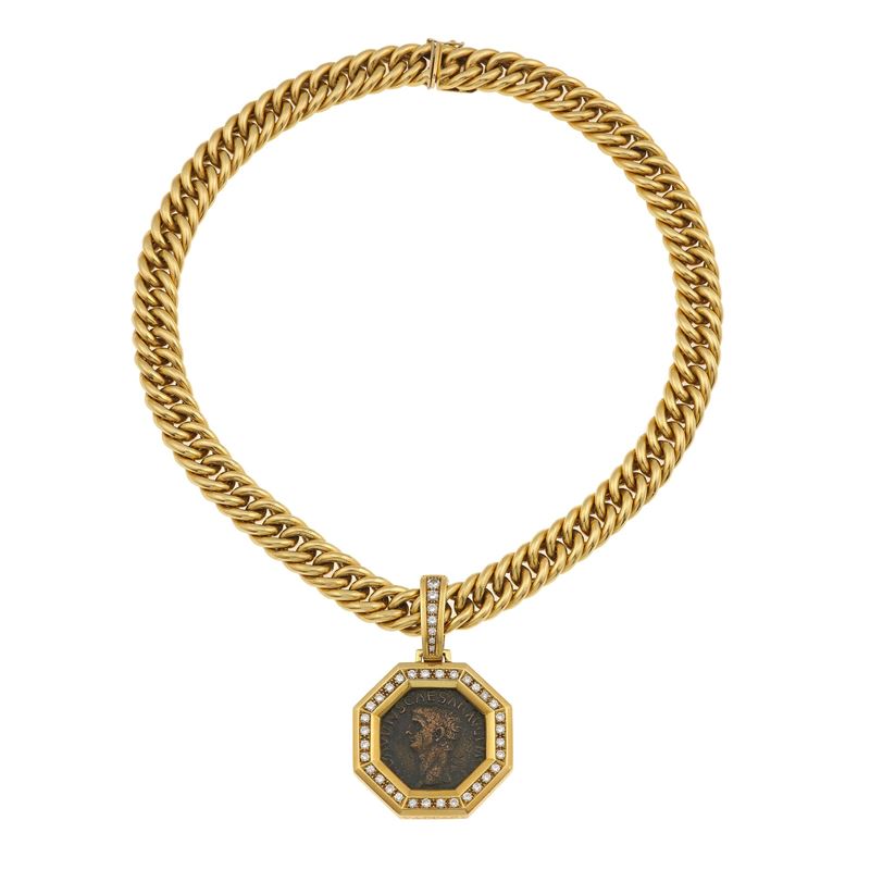 montatura in oro giallo 750/1000. Pendente rimovibile, firmato Vaccari
