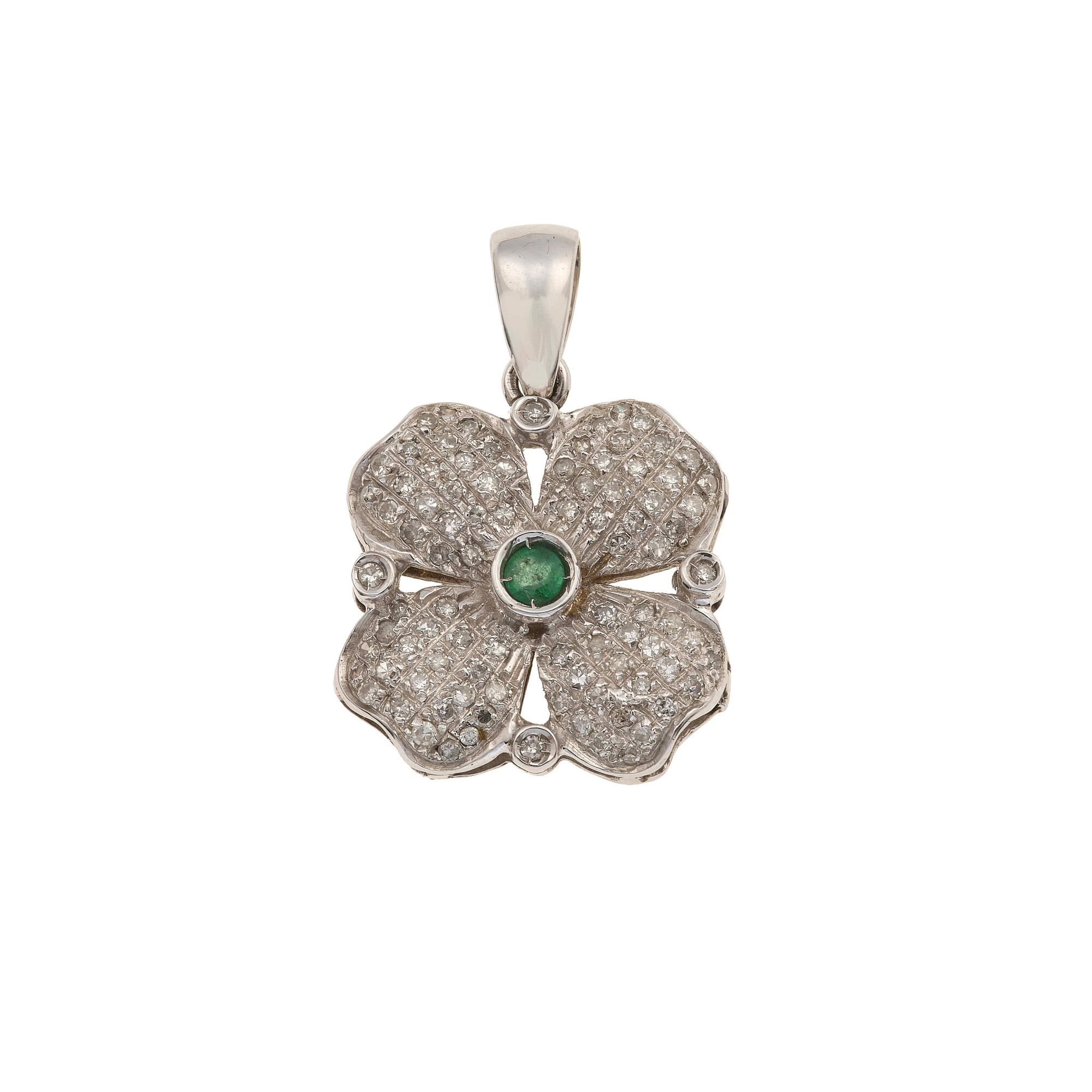 Pendente "quadrifoglio" con smeraldo e pavé di diamanti