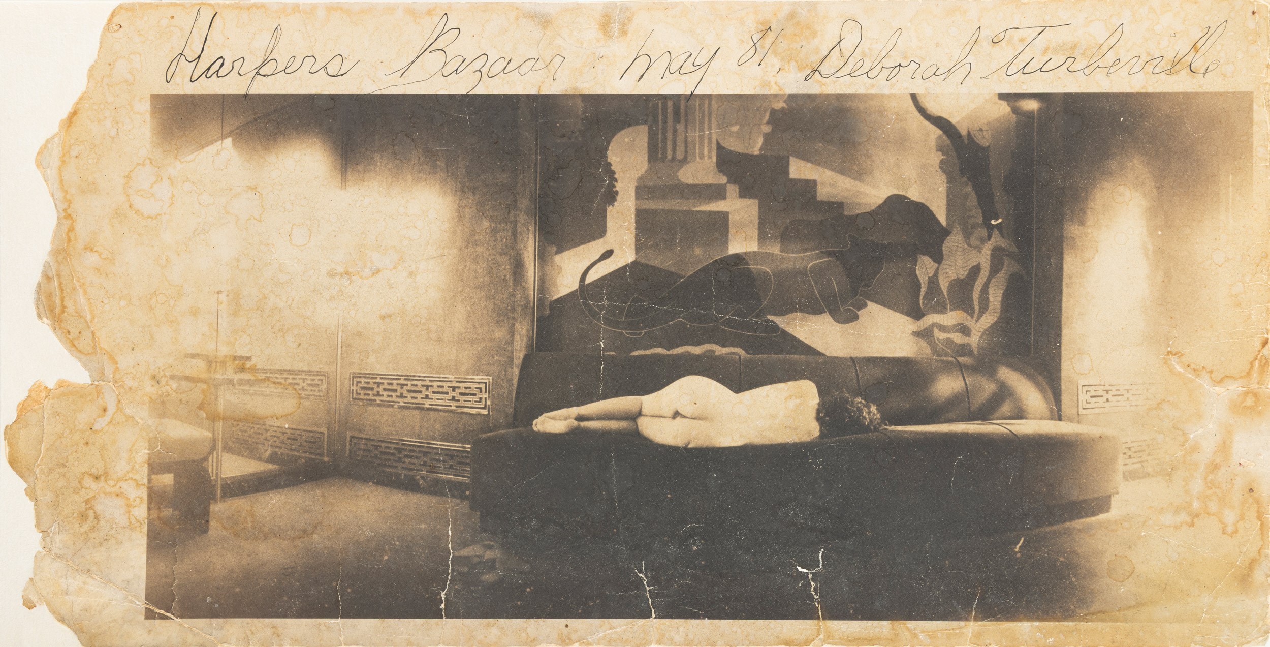 iscritta e firmata a penna nera nel margine superiore: Harpers Bazaar: May 81. Deborah Turberville.