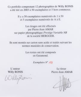 Portfolio di 12 stampe fotografiche realizzate da Pierre-Jean Amar con testo dattiloscritto di Alain Paire Portfolio 1936-1991, 2003