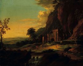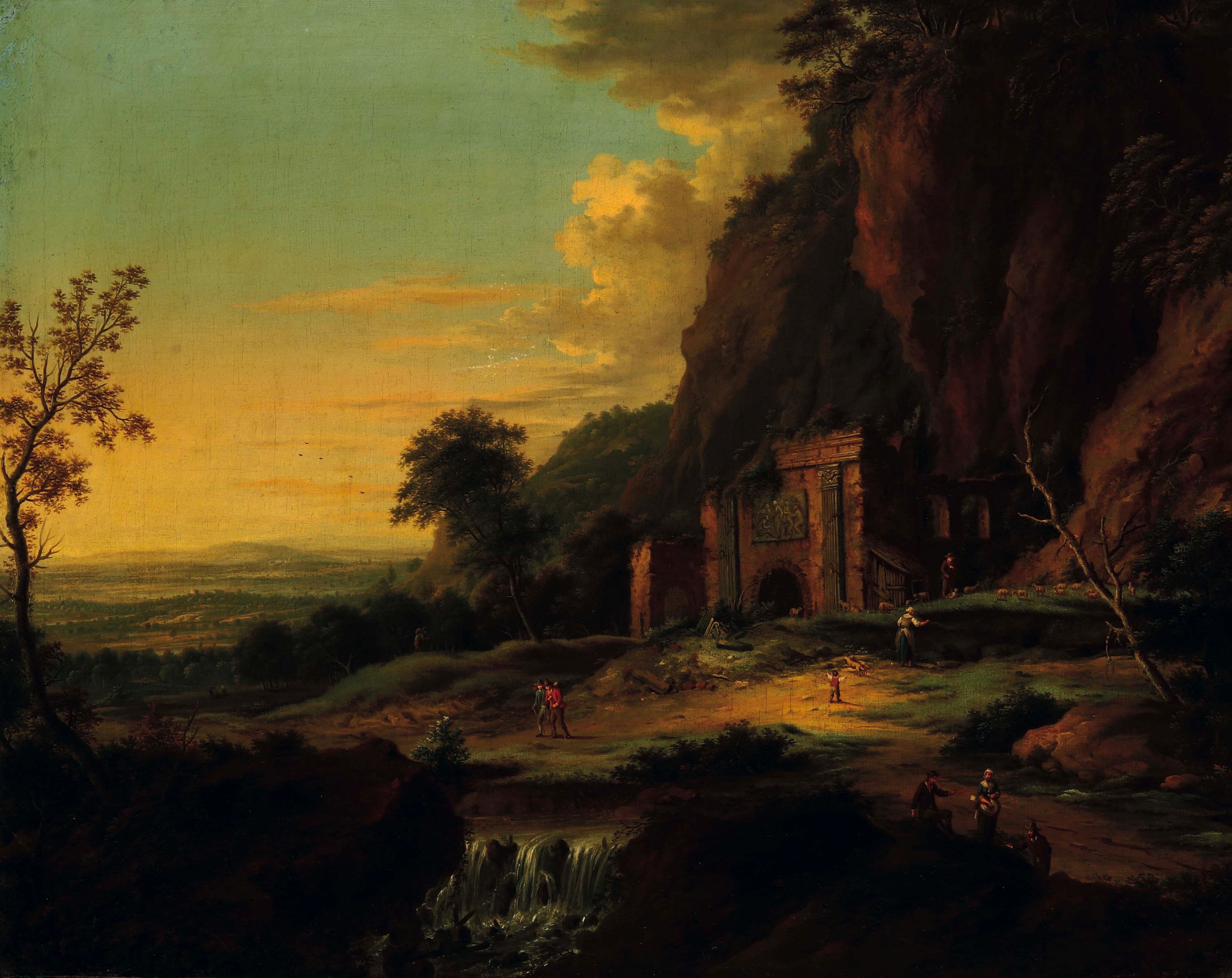 Paesaggio fluviale con pastori e contadini