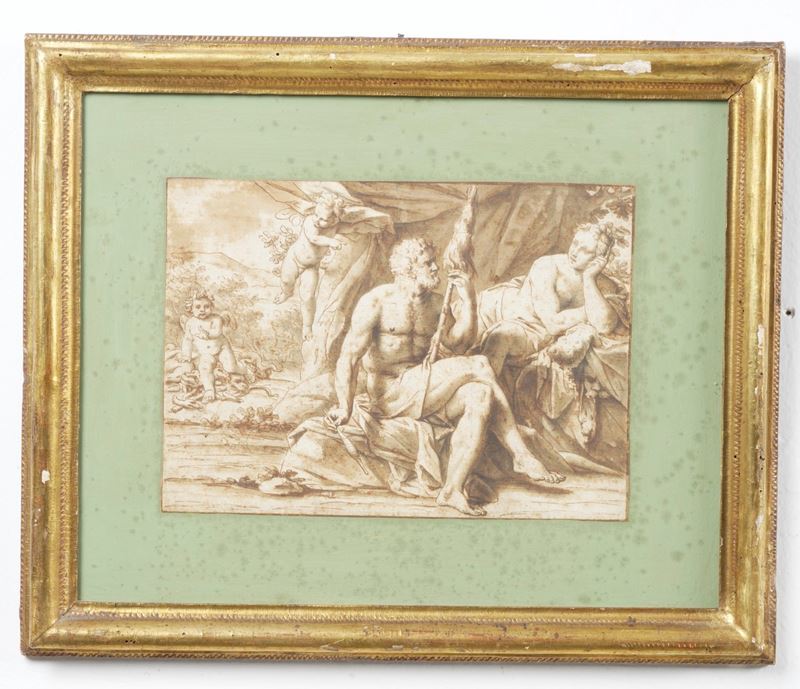 Scuola del XVII-XVIII secolo Studio di Crocifissione Ercole e Onfale