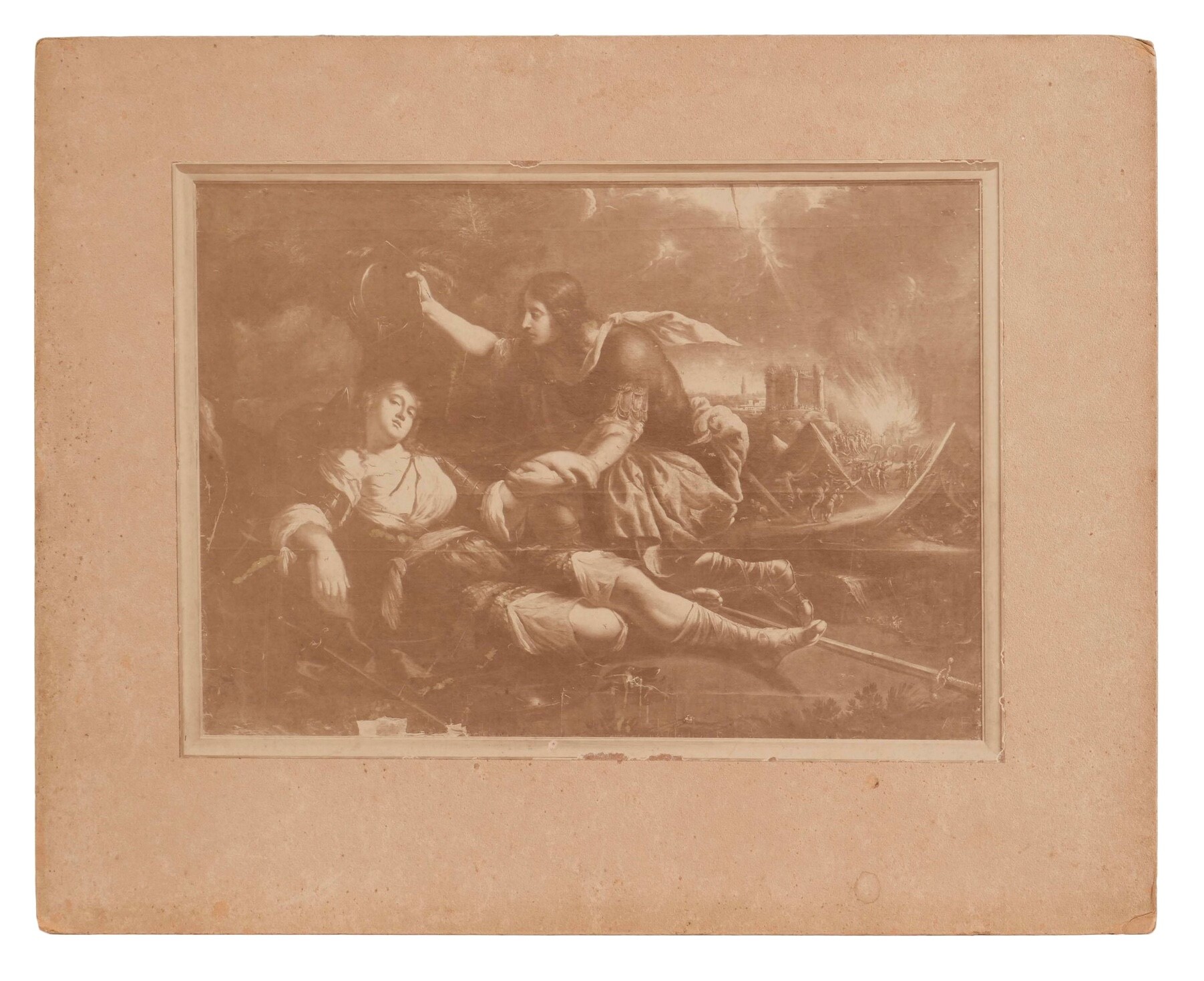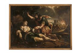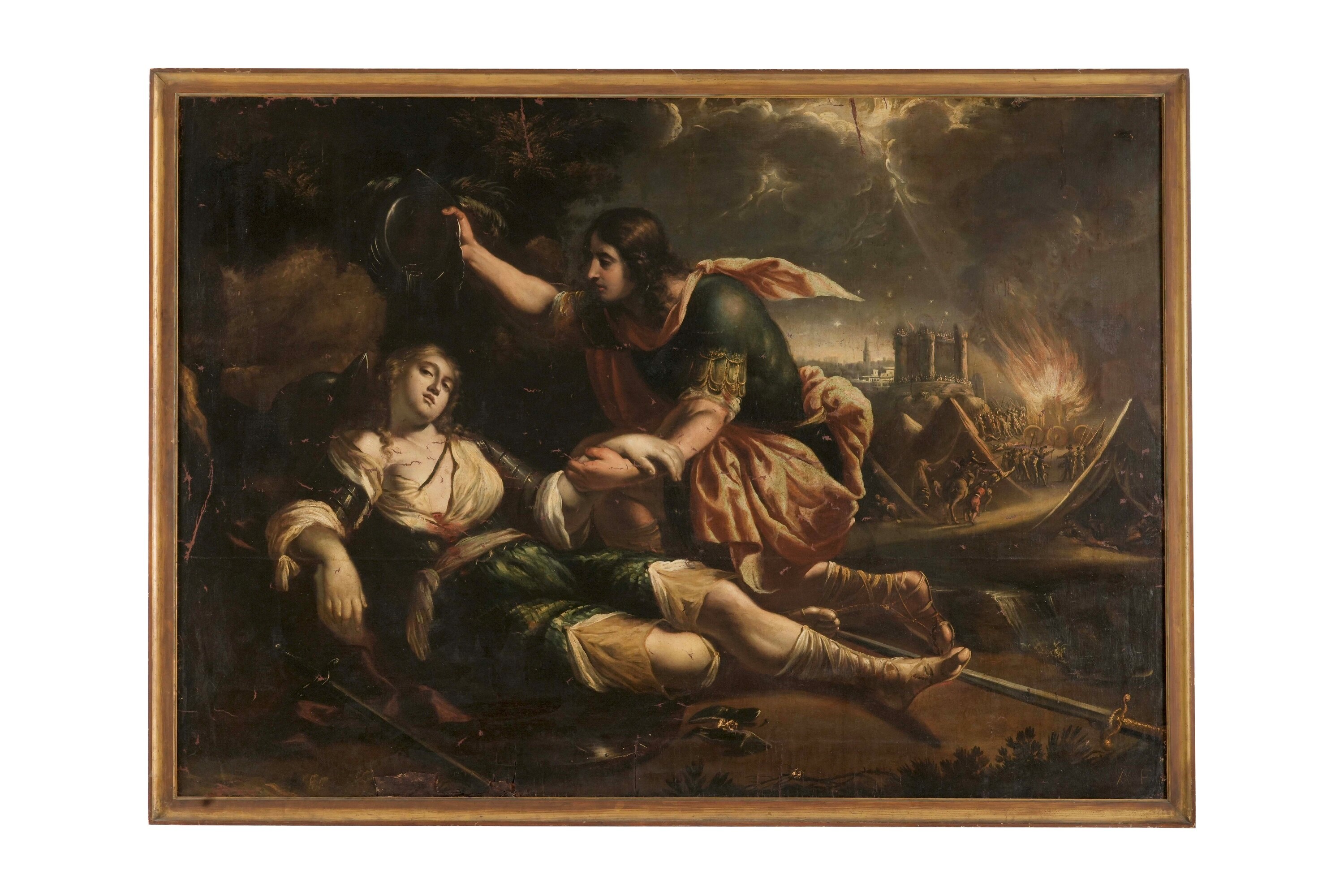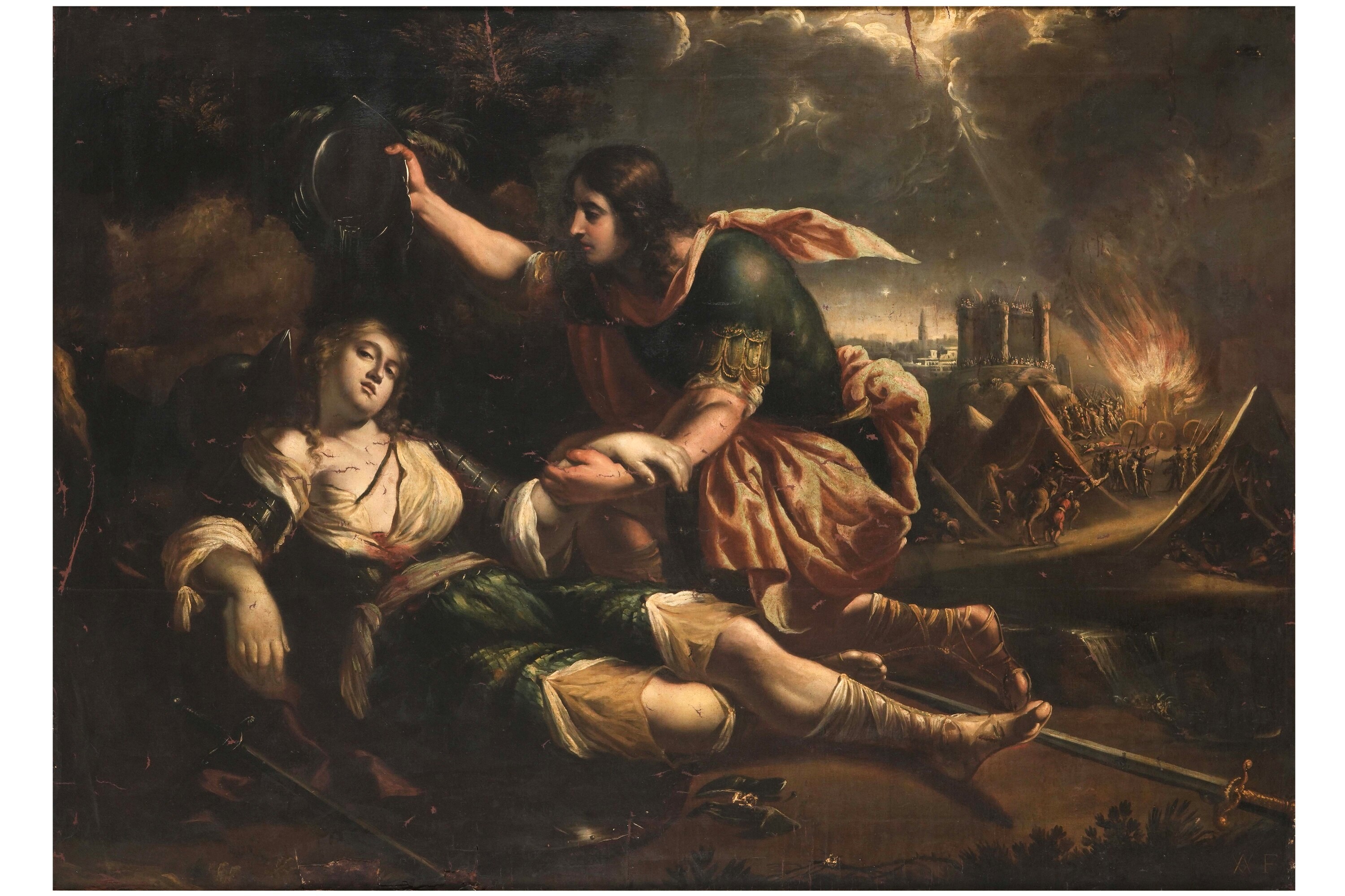 Il dipinto con Battesimo di Clorinda reca nell'angolo in basso a sinistra le iniziali intrecciate “AV” riferite, come in altre composizioni note, al pittore napoletano Andrea Vaccaro, attivo nella prima parte e alla metà del Seicento nei modi dei caravaggeschi e, in alternativa, dopo il 1640, in quelli dei pittori d'orientamento classicista e reniano. Personalmente, ritengo che il dipinto, sebbene alterato da passati interventi conservativi, possa essere confermato, come da sigla dipinta sulle stesure di colore originarie, ad Andrea Vaccaro dopo il 1650 e, quindi, nella fase di moderato classicismo e di concordanze stilistiche con l'opera coeva di Bernardo Cavallino.