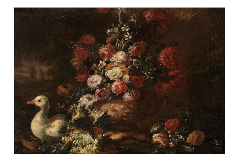 Paesaggio con trionfo di fiori e papere