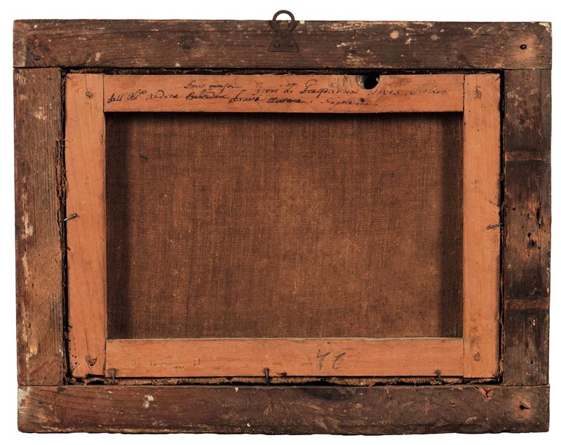 reca antica iscrizione al retro sul telaio