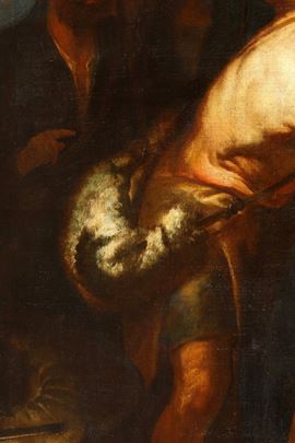 Queste due grandi tele provenienti dalla collezione di Raffaele Costa, mercante di coralli attivo a Genova tra la fine ‘800 e inizio ‘900 (P.G. Quartero, E. Dagnino, Genova e il corallo, Genova 2020, pp. 99, 104) sono un’aggiunta significativa al catalogo assai ridotto di Luca Saltarello. Nonostante il ‘raro talento’ a lui attribuito, siamo in possesso di poche informazioni sulla sua vita (R. Soprani, Le vite de’ Pittori, Scoltori, et Architetti Genovesi..., Genova 1674, p. 83); nonostante la gran copia di tele riposte in luoghi privati ’non più di tre opere si vedono di suo in luogo pubblico’ e di queste oggi è noto soltanto il Miracolo di san Benedetto per la chiesa di Santo Stefano a Genova, firmato e datato 1632. Indagini per il suo catalogo sono state condotte da Camillo Manzitti (Camillo Manzitti, Luca Saltarello: un percorso artistico tra naturalismo e barocco, ‘Paragone’, LVII, 2007 (2006), 70 (681), pp. 21-29) e da Anna Orlando (A. Orlando, Dipinti Genovesi dal Cinquecento al Settecento.