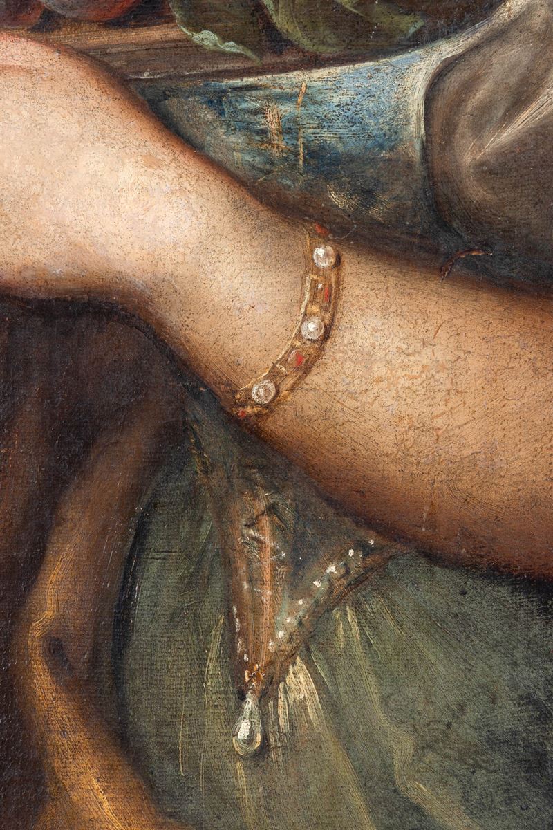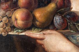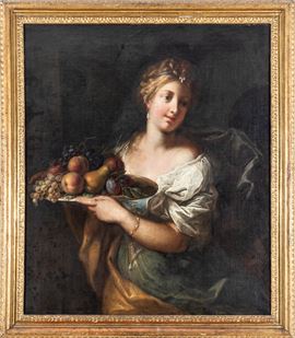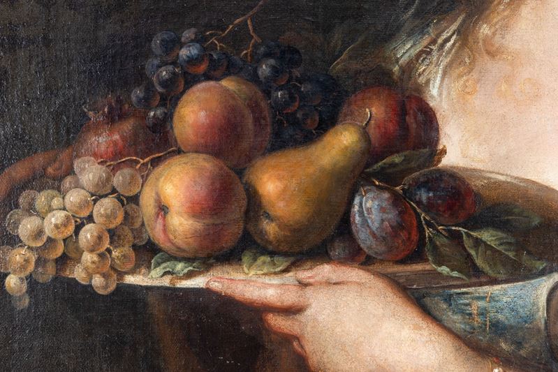 Scuola del XVII secolo Fanciulla con piatto di frutti