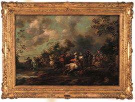 Scuola fiamminga del XVIII secolo Scontro di cavalleria