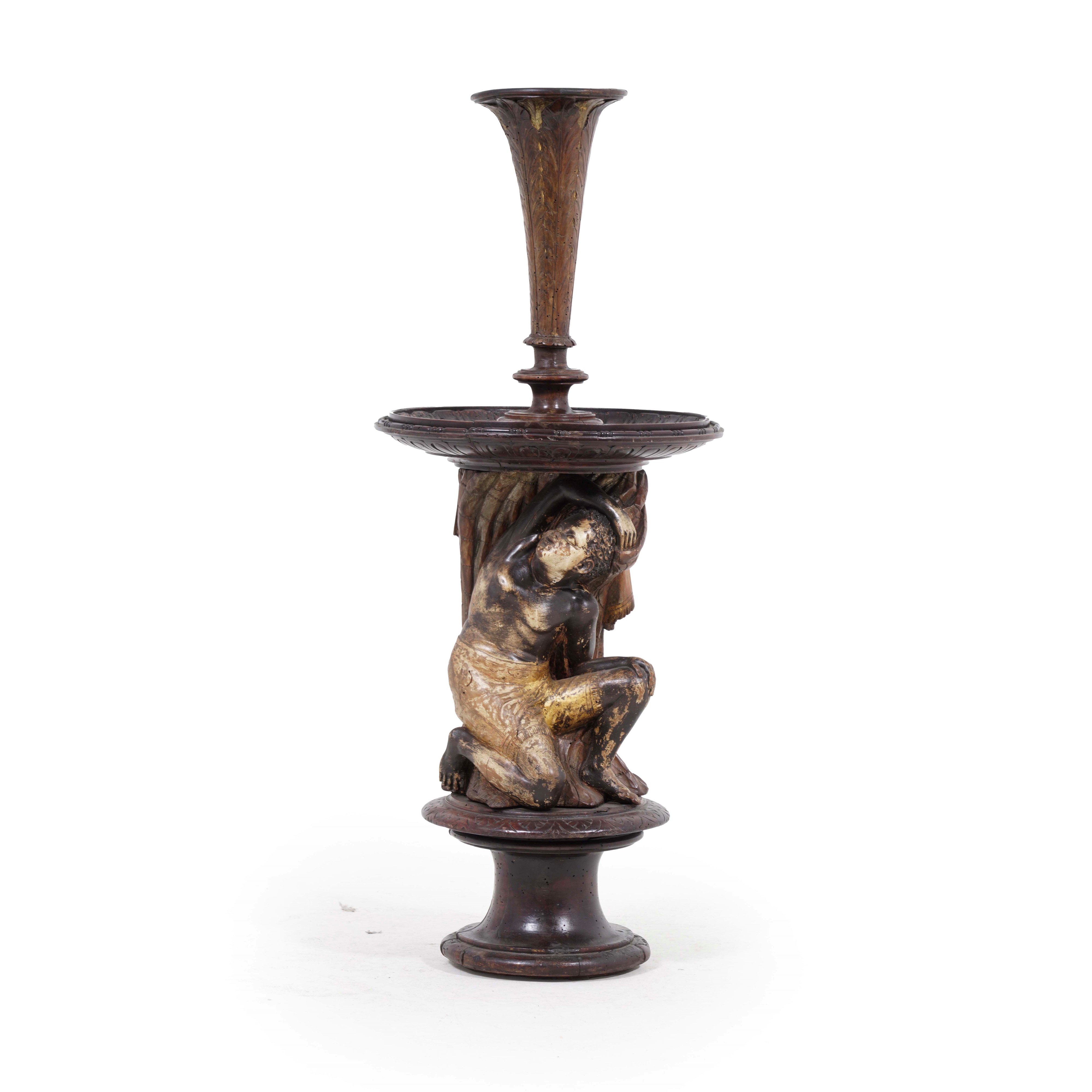 Base portavaso in legno intagliato e dipinto. XVIII-XIX secolo