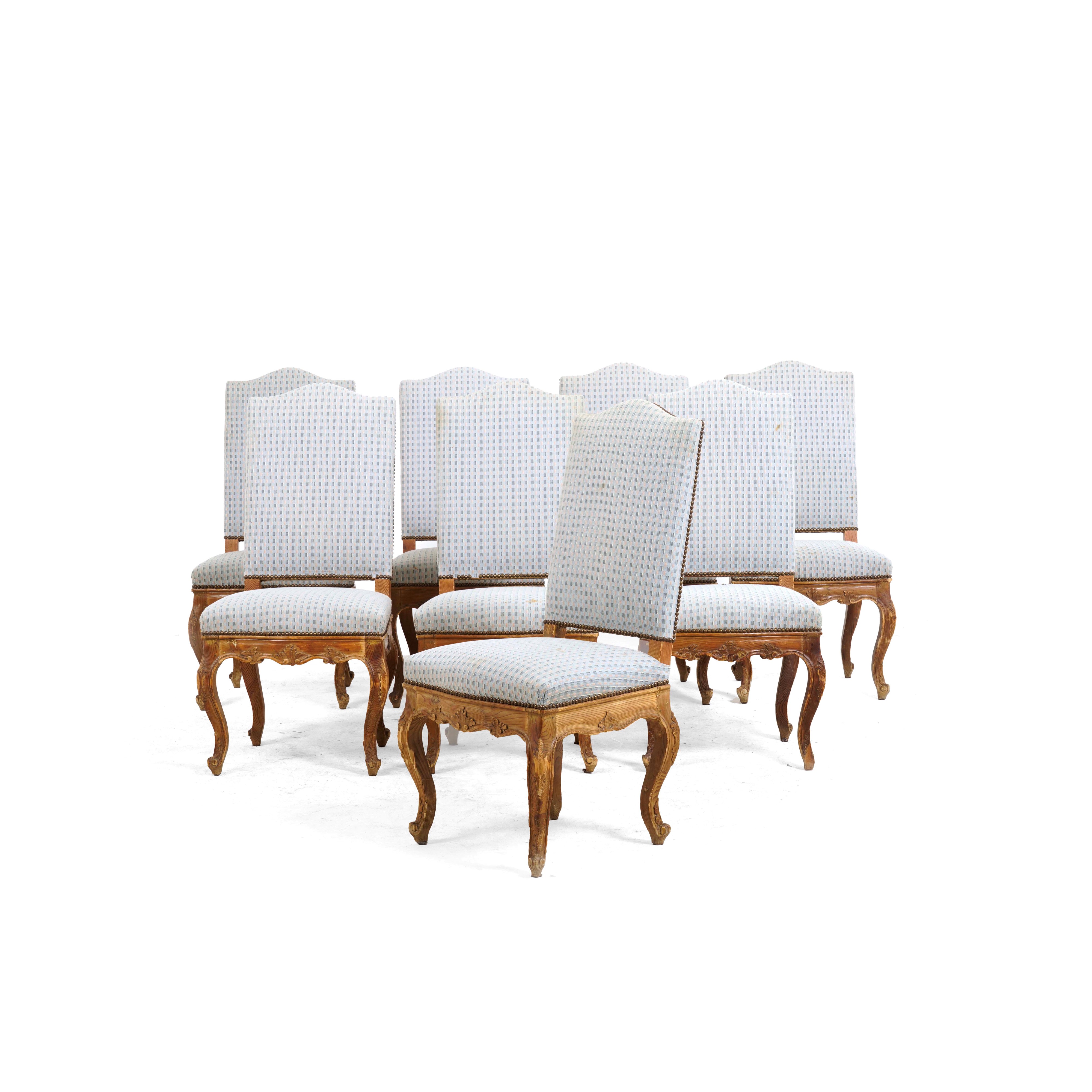 Gruppo di otto sedie in legno intagliato
