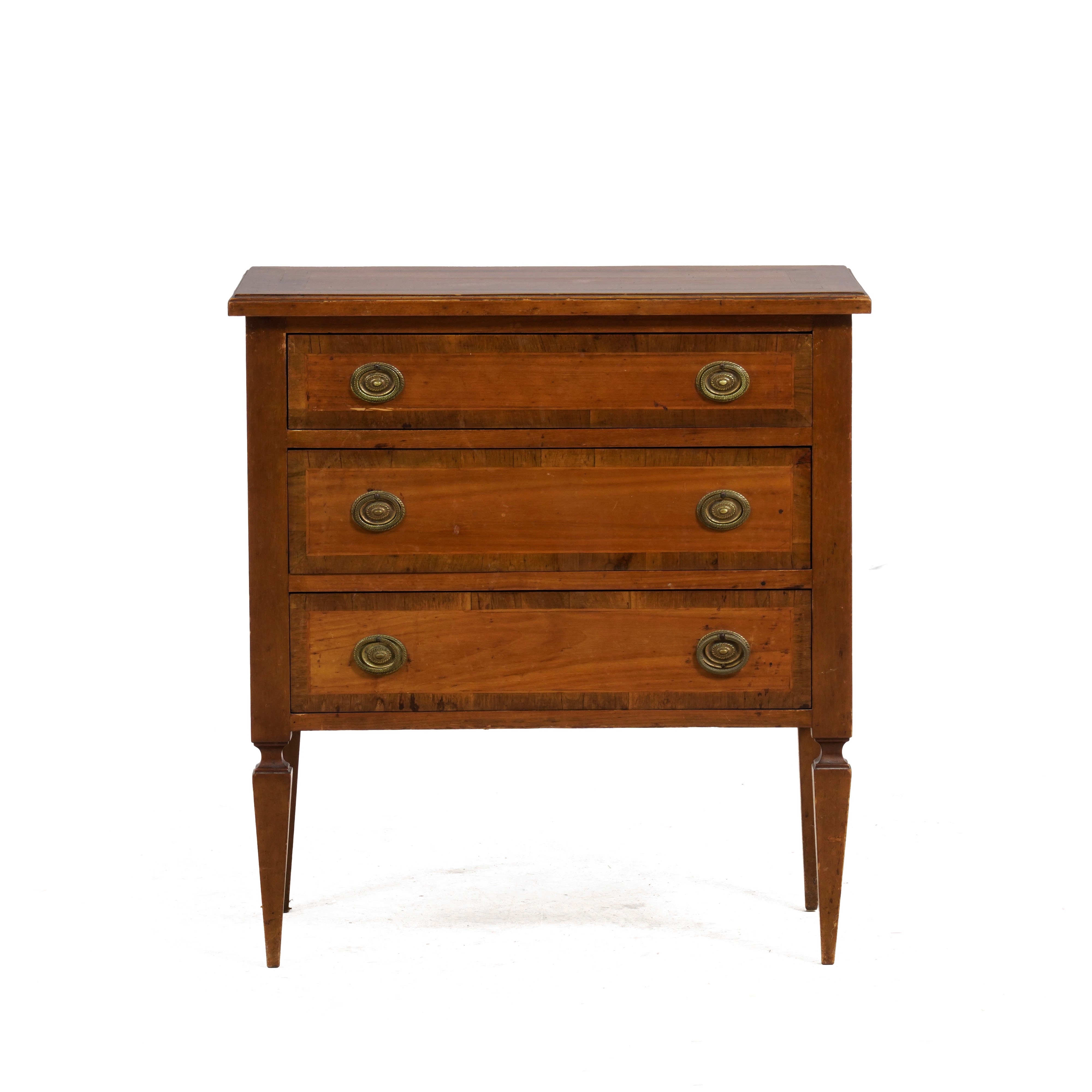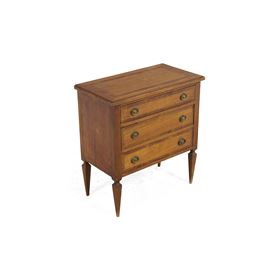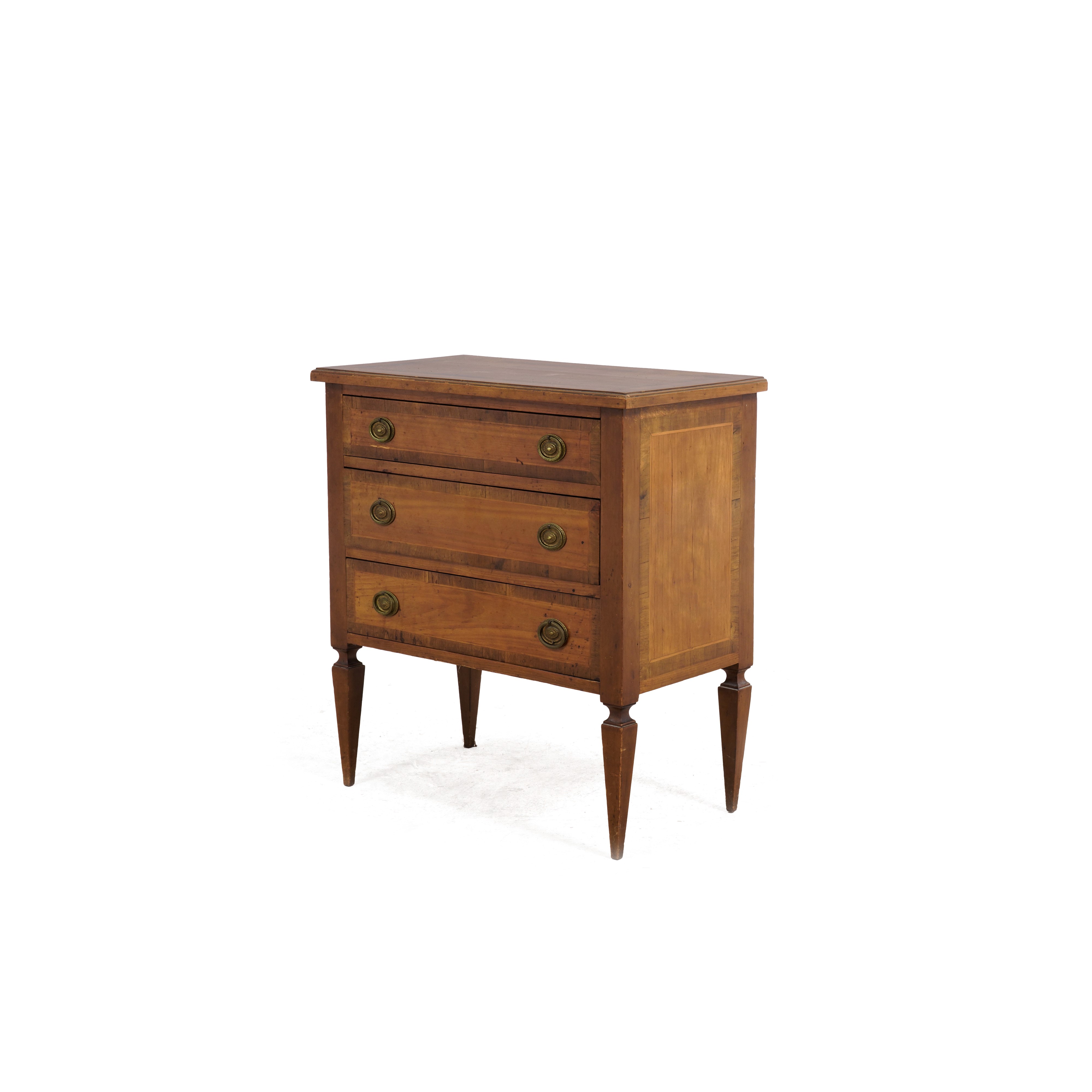 Lastronato e filettato. Fronte a tre cassetti, gambe anteriori rastremate
