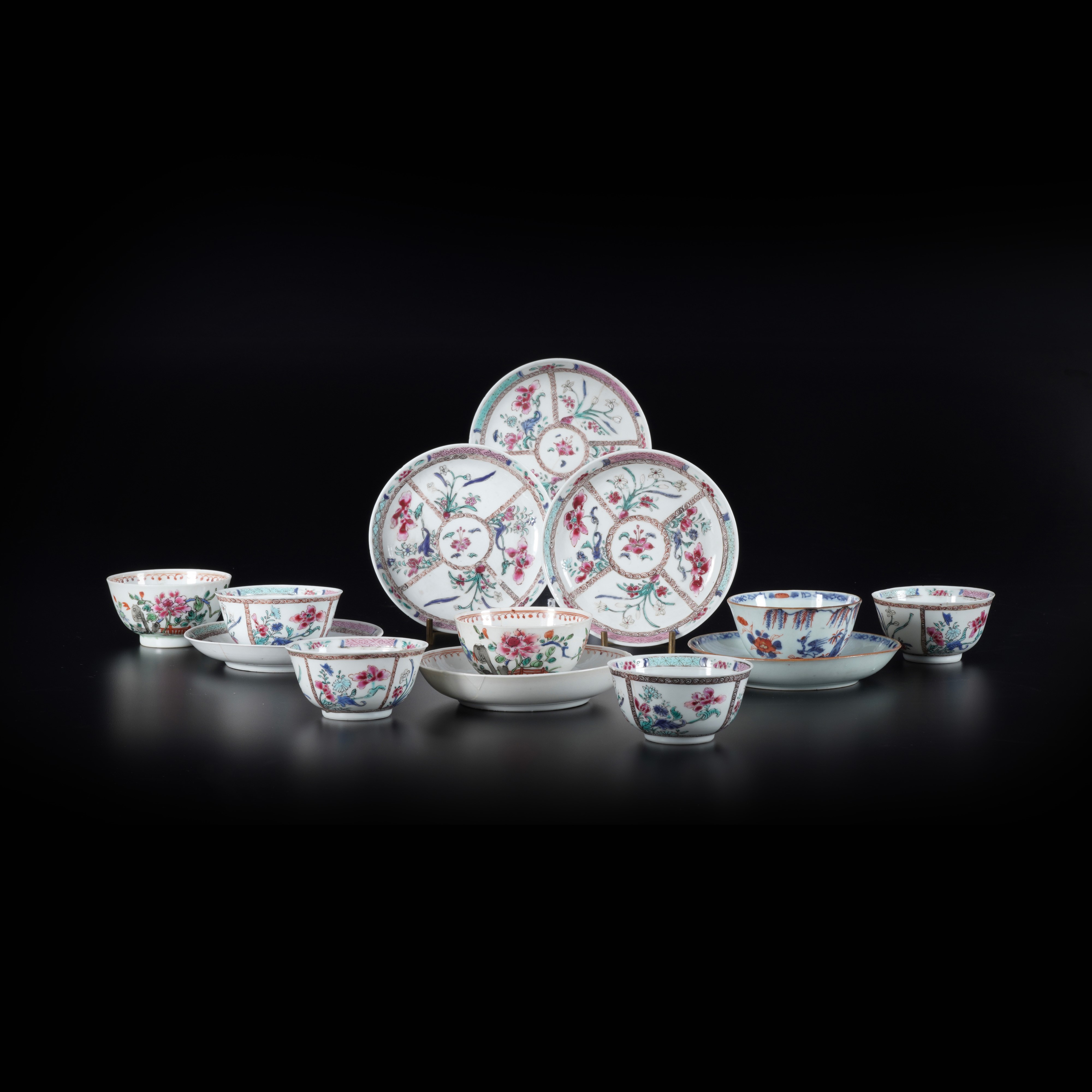 Servizio in porcellana Famiglia Rosa con decori a motivi floreali, Cina, Dinastia Qing, XIX secolo