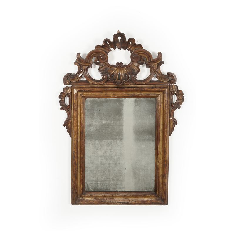 Specchierina in legno intagliato e dorato a mecca. XVIII-XIX secolo