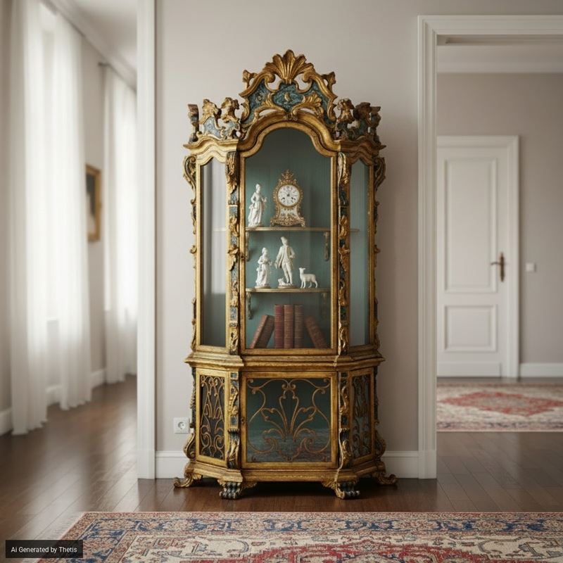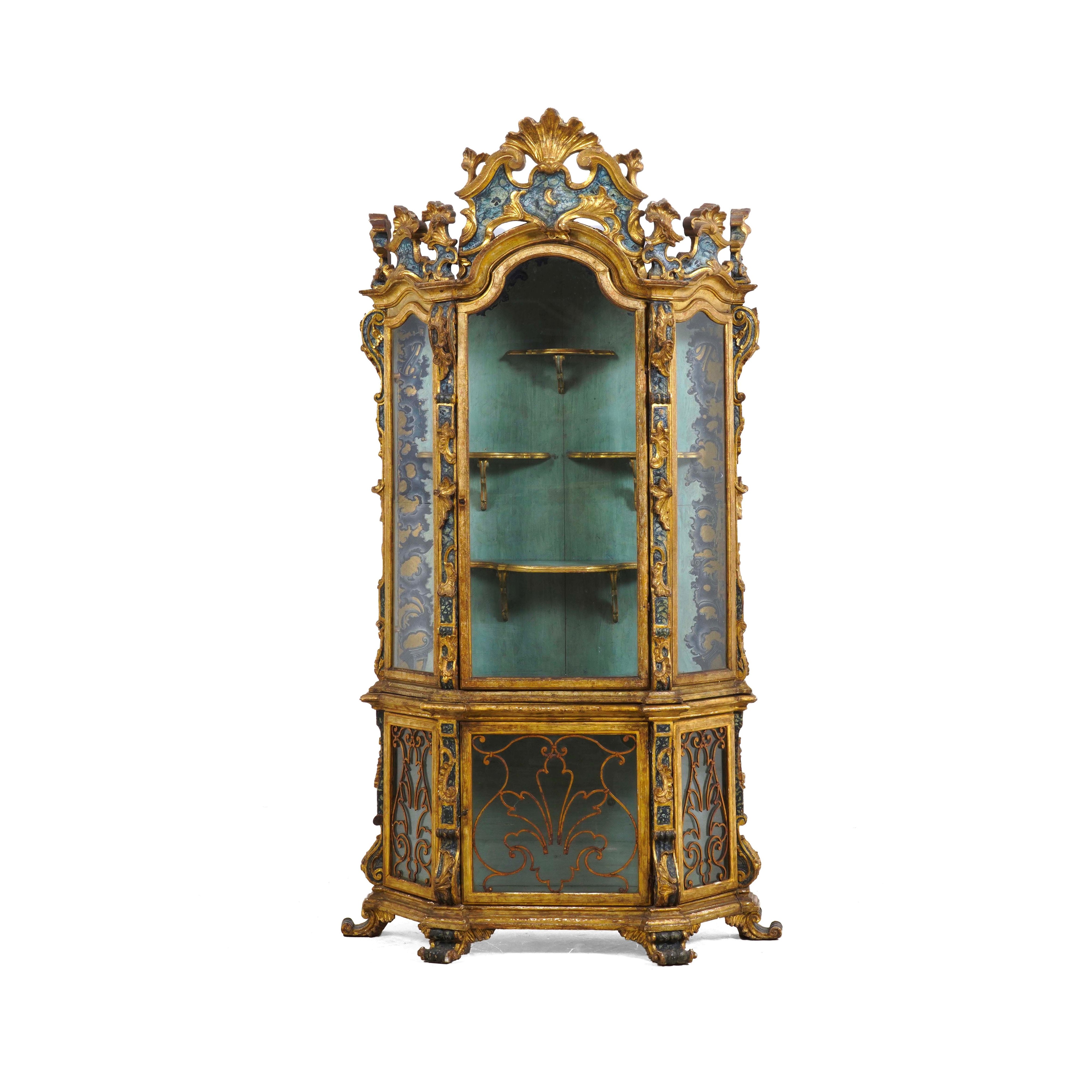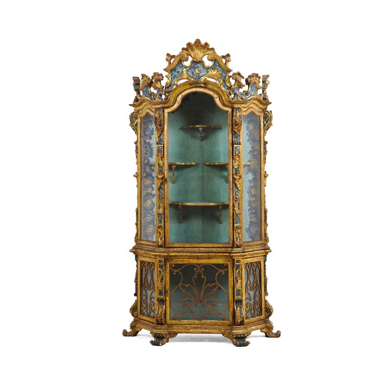 Vetrina in legno intagliato, laccato a finto marmo e dorato. XIX secolo